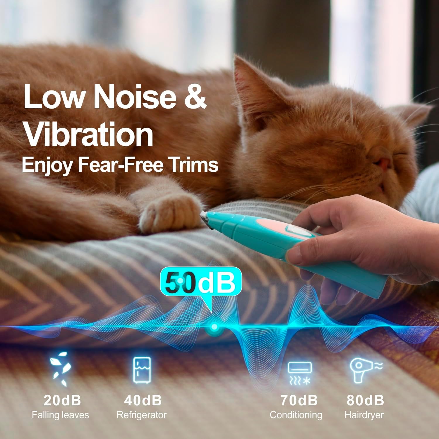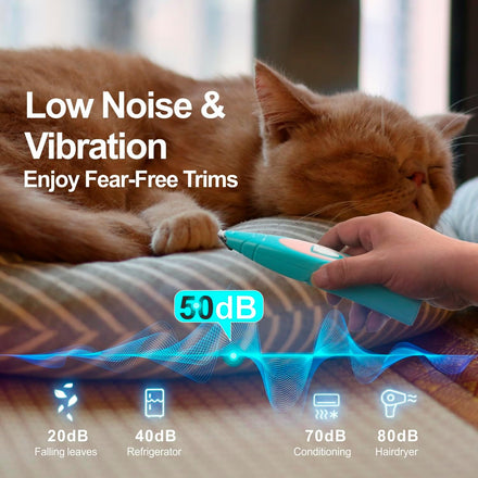 - 【Low Noise】This dog clipper features a powerful motor with low-noise technology, operating at less than 50db. It protects your pet from stress and fear during grooming, so they won't be afraid of haircuts anymore. You don't have to worry about scaring or harming them.