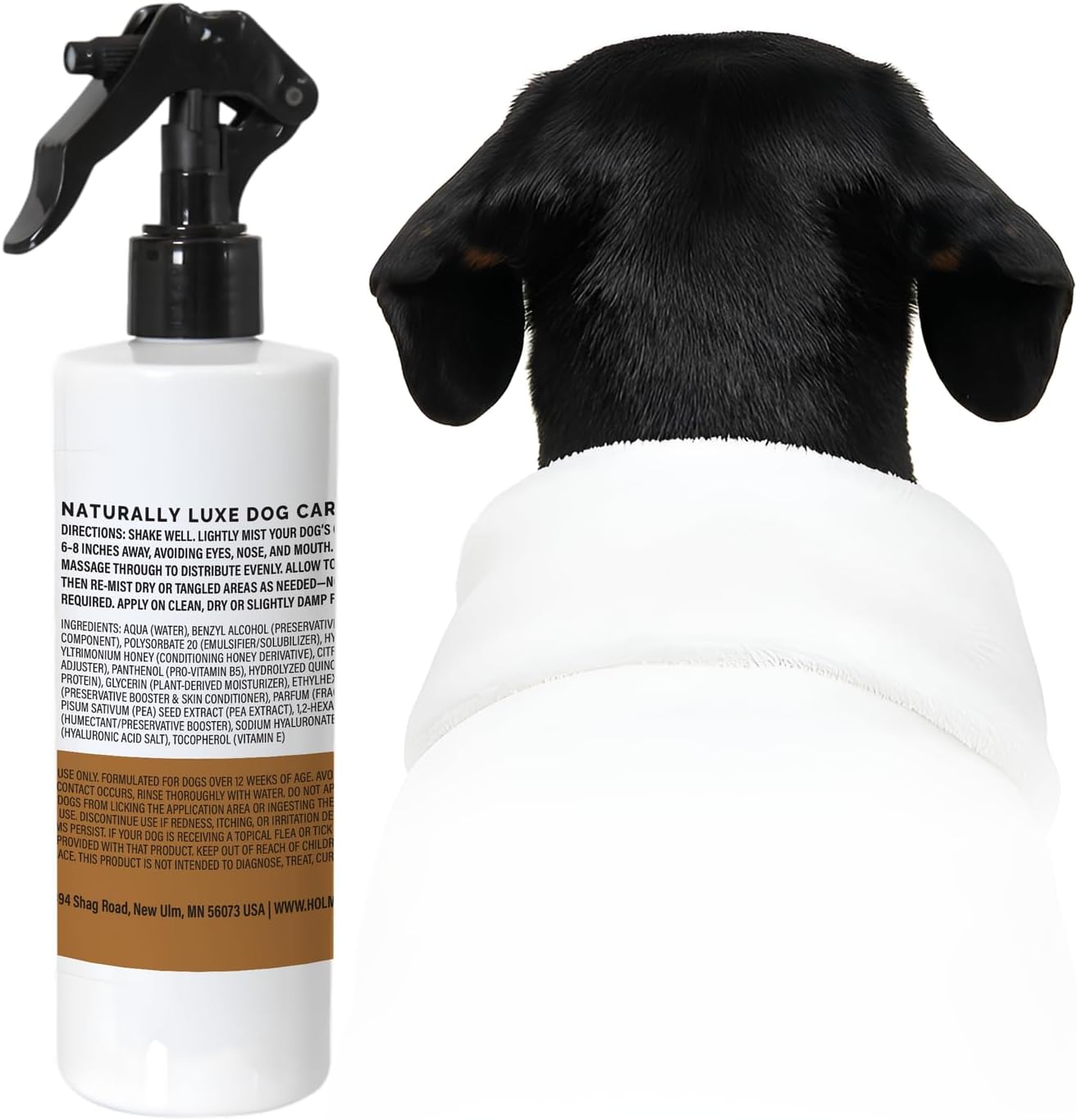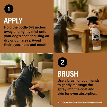 - EASY LEAVE-IN APPLICATION – Convenient fine-mist sprayer delivers even coverage that absorbs quickly — no rinse required. Perfect for daily use, after baths, or touch-ups to keep your dog’s coat soft, manageable, and snuggle-ready.