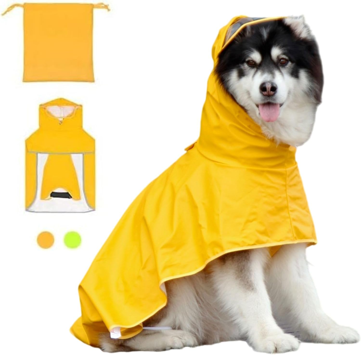 Dog Poncho Hooded Raincoat for Puppies & Small to Large Dogs, Waterproof Dog Rain Jacket with Reflective Strip, Lightweight Slicker with Storage Bag for Easy Carrying (Small Plus, Yellow)