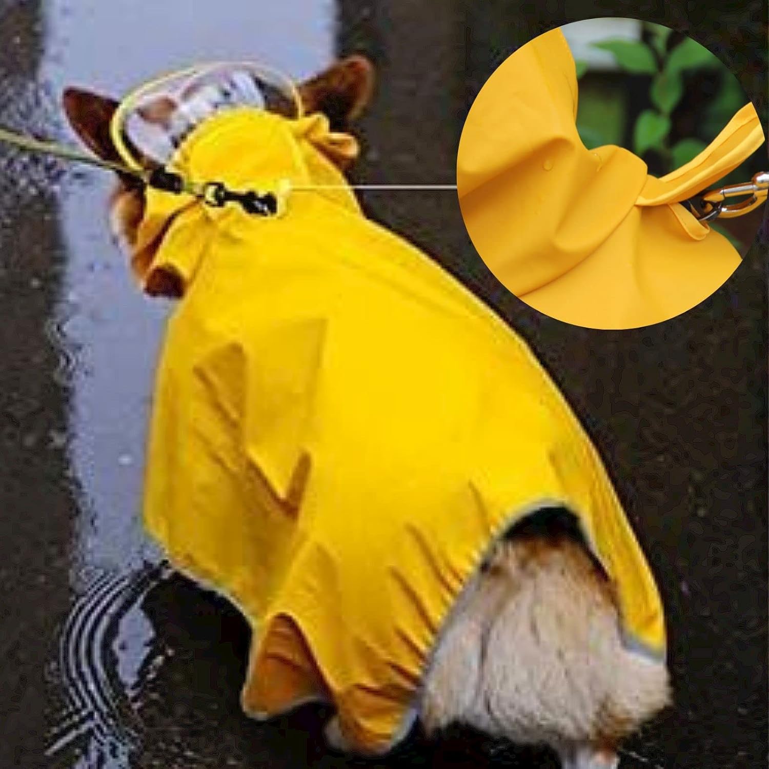 Waterproof fabric: Carefully crafted from waterproof coating to keep dog dry while walking in the rain. The lightweight material will let your dog enjoy the rain when wearing this dog rain coat