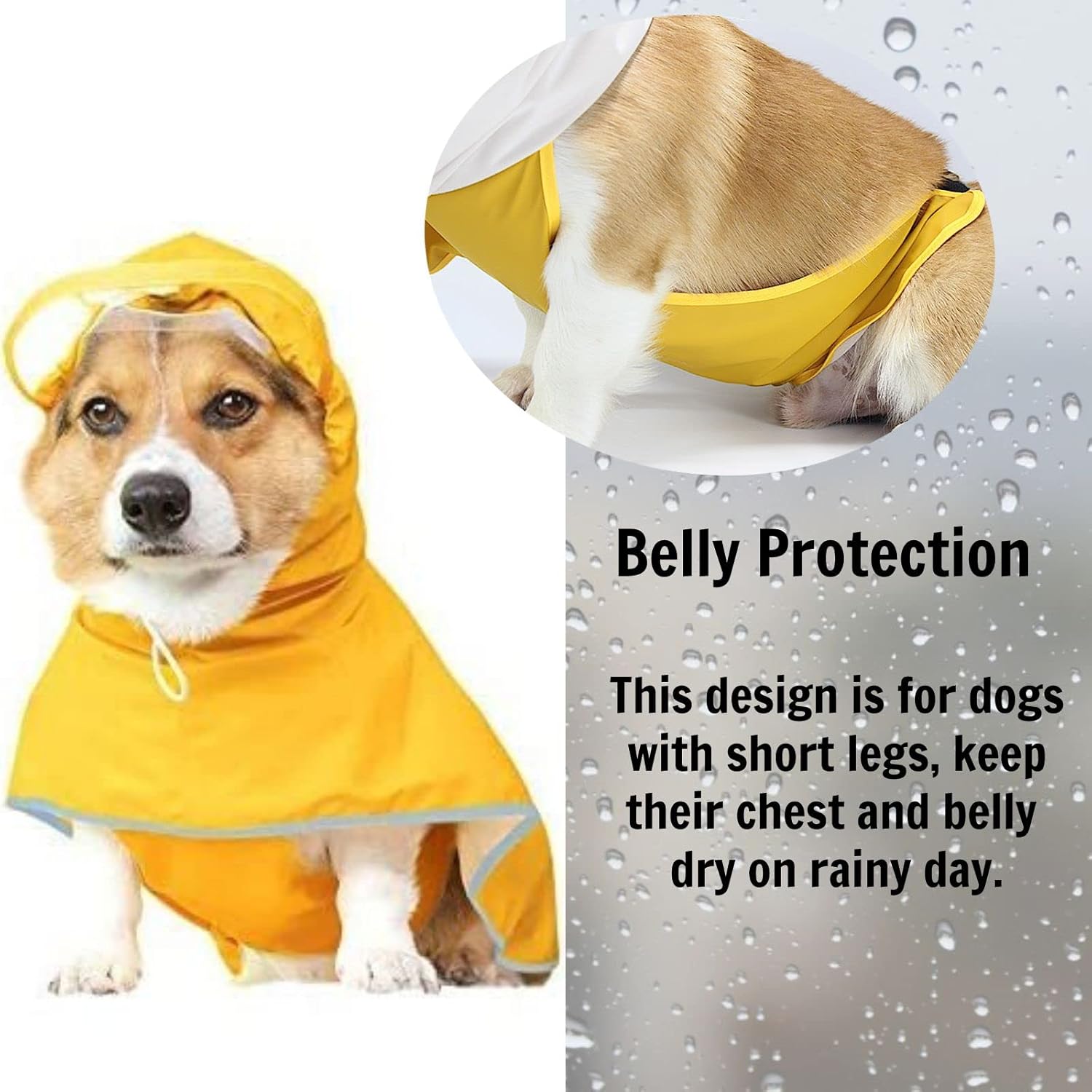 Reflective Stripe: REFLECTIVE AND SAFETY: Reflective strips are used on the hoodie of the raincoat, enhancing your dog great visible and safe at night