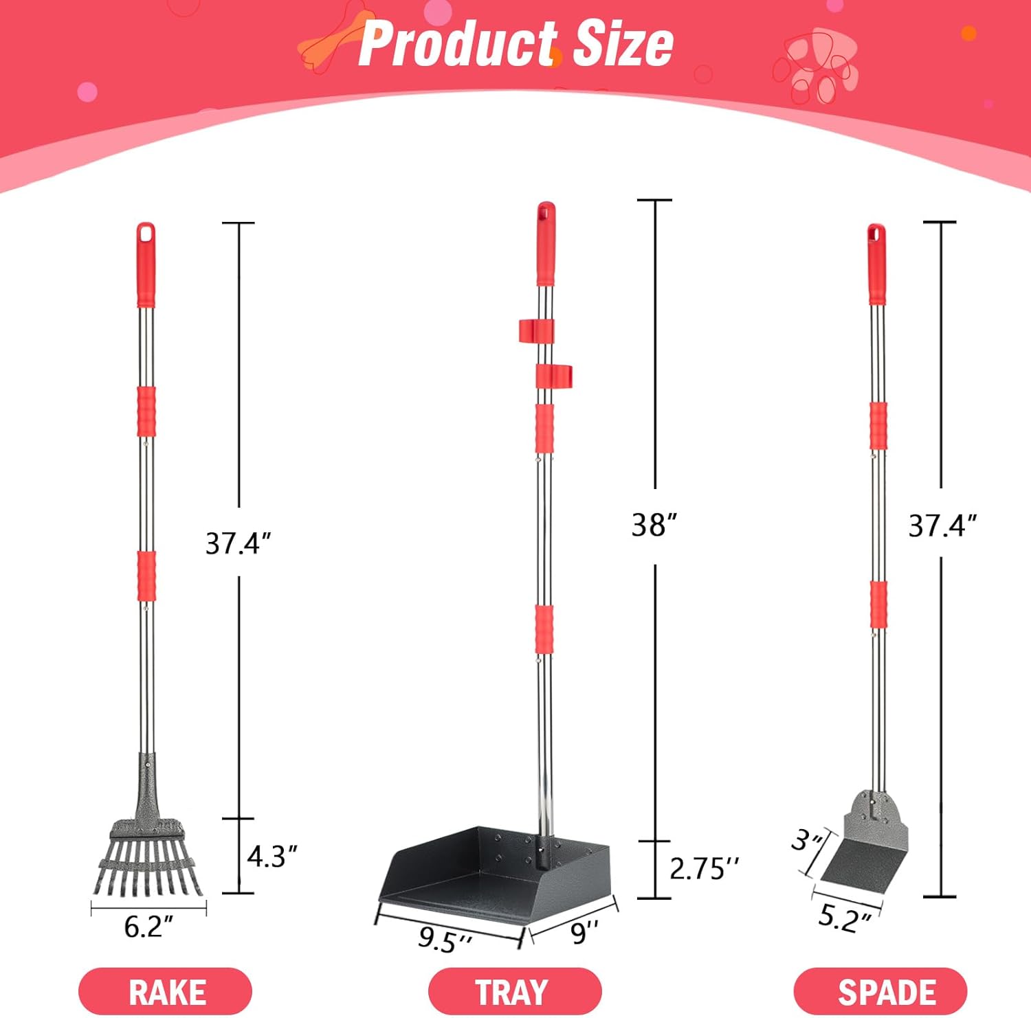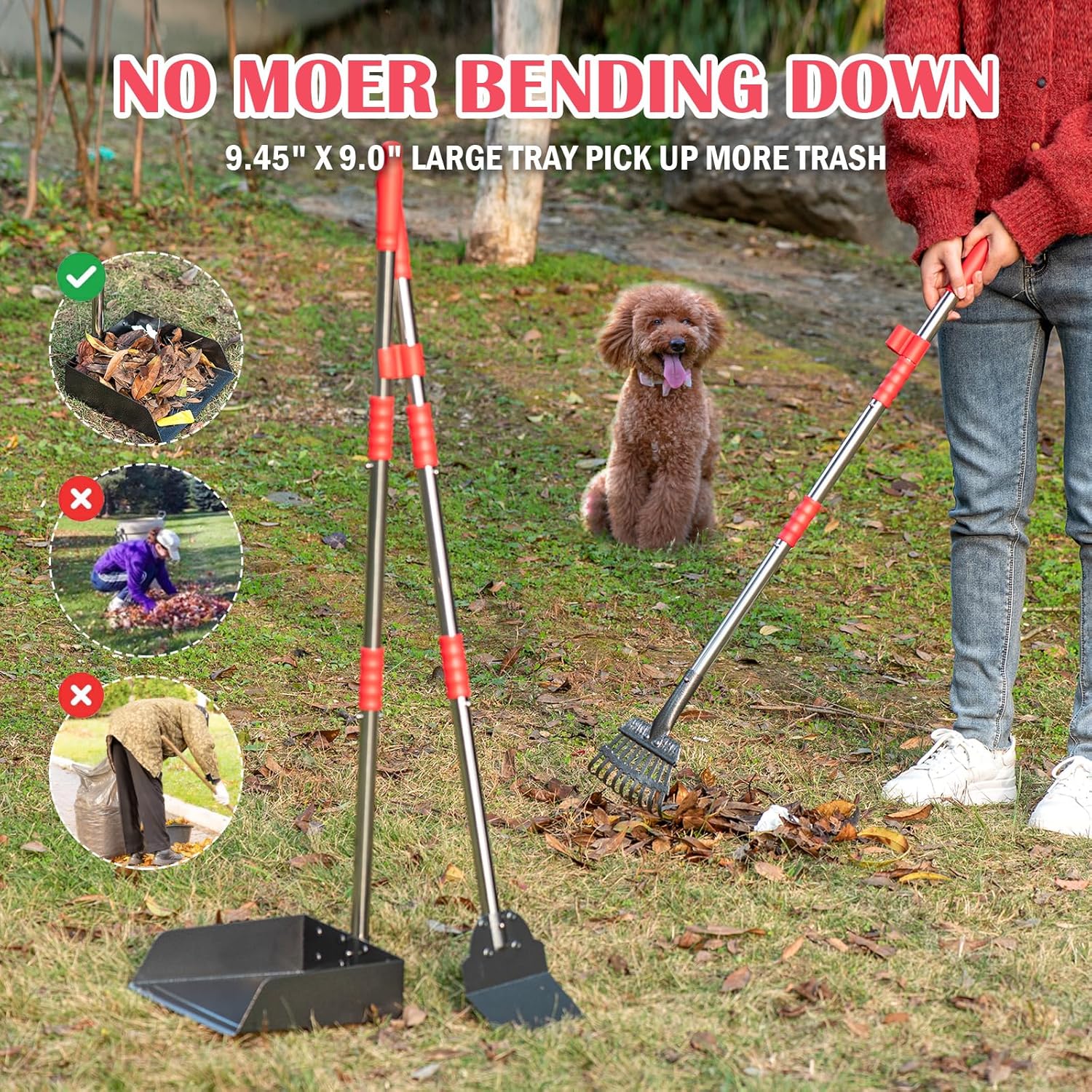 - Versatile Use: The Rake with Tray & Spade set and this dog pooper scooper are versatile tools. Suitable for various surfaces like grass, concrete, gravel. The dog poop scooper for yard and is perfect for picking up pet waste, leaves and garden debris. Keep your outdoor areas clean.