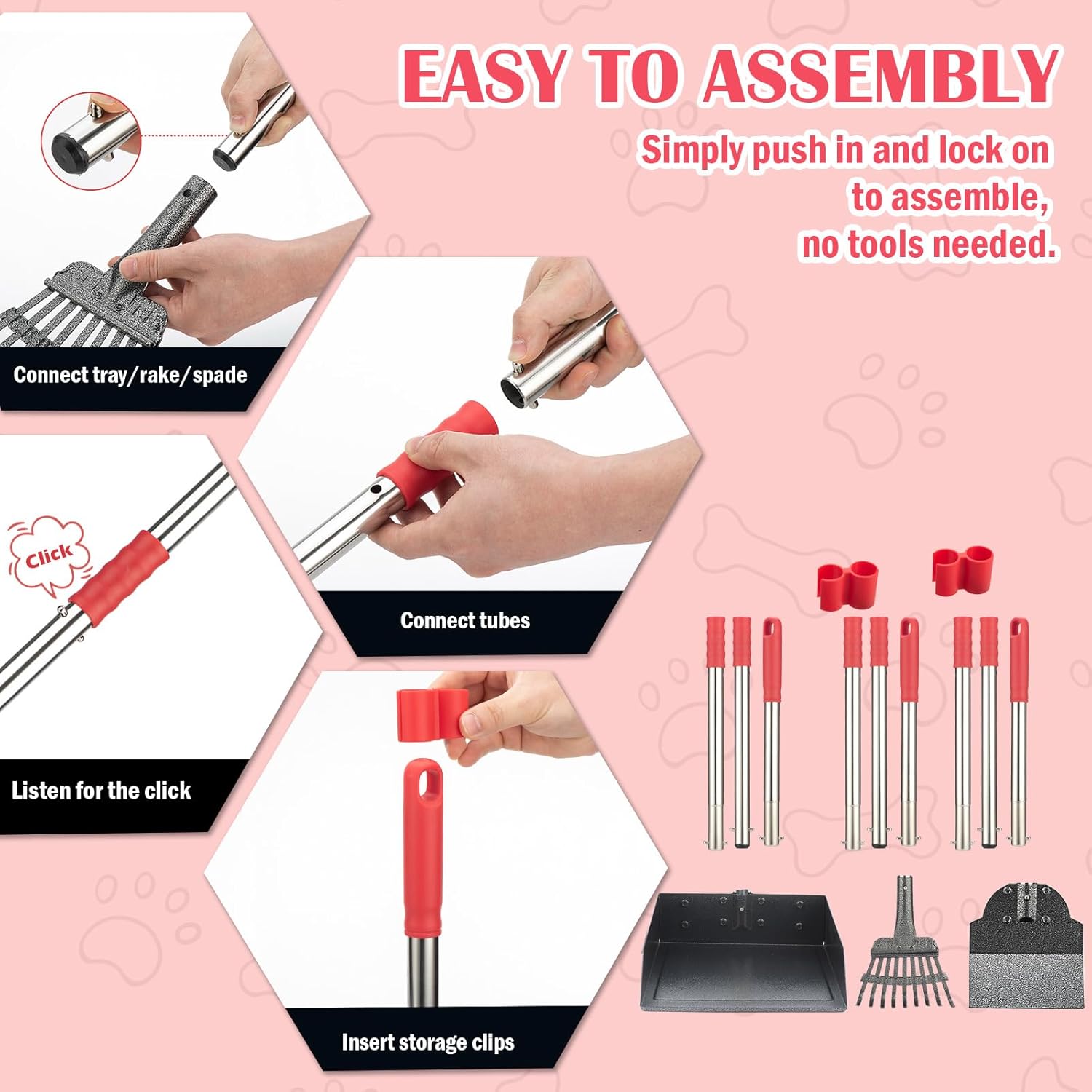 - Adjustable long handles No need to bend over: The pooper scooper for dogs set comes with 38" long handle that allows making it easy to pick up pet waste. This reducing direct contact with the dog poop and making the cleaning process more hygienic.