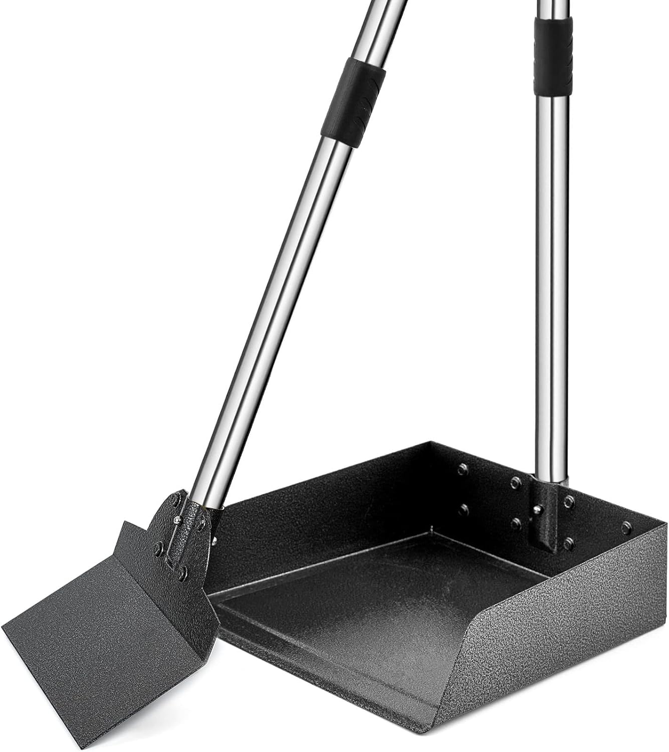 - ★ DURABLE AND LIGHTWEIGHT - Handle is made of premium stainless steel, tray, rake and spade are made of aluminum material, this poop scooper is super sturdy, resistant to rust and dirty, but lightweight to hold along your walk with your furry friends.