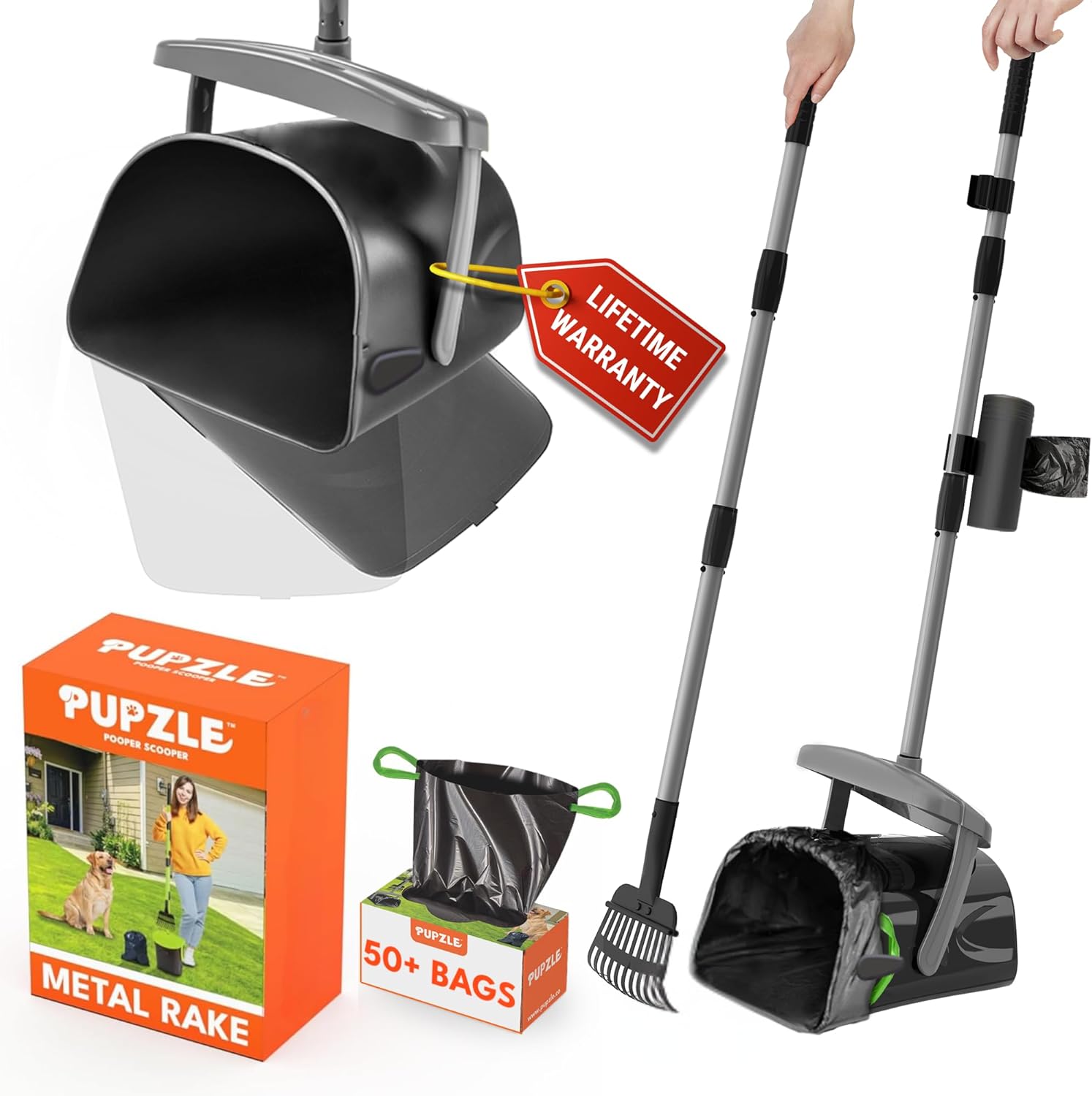 - Sturdy & Durable: The Pupzle large pooper scooper is built to last, featuring a rust-resistant steel rake for efficient waste collection in a single pass and a high-quality, durable plastic swivel bin that helps contain odors.