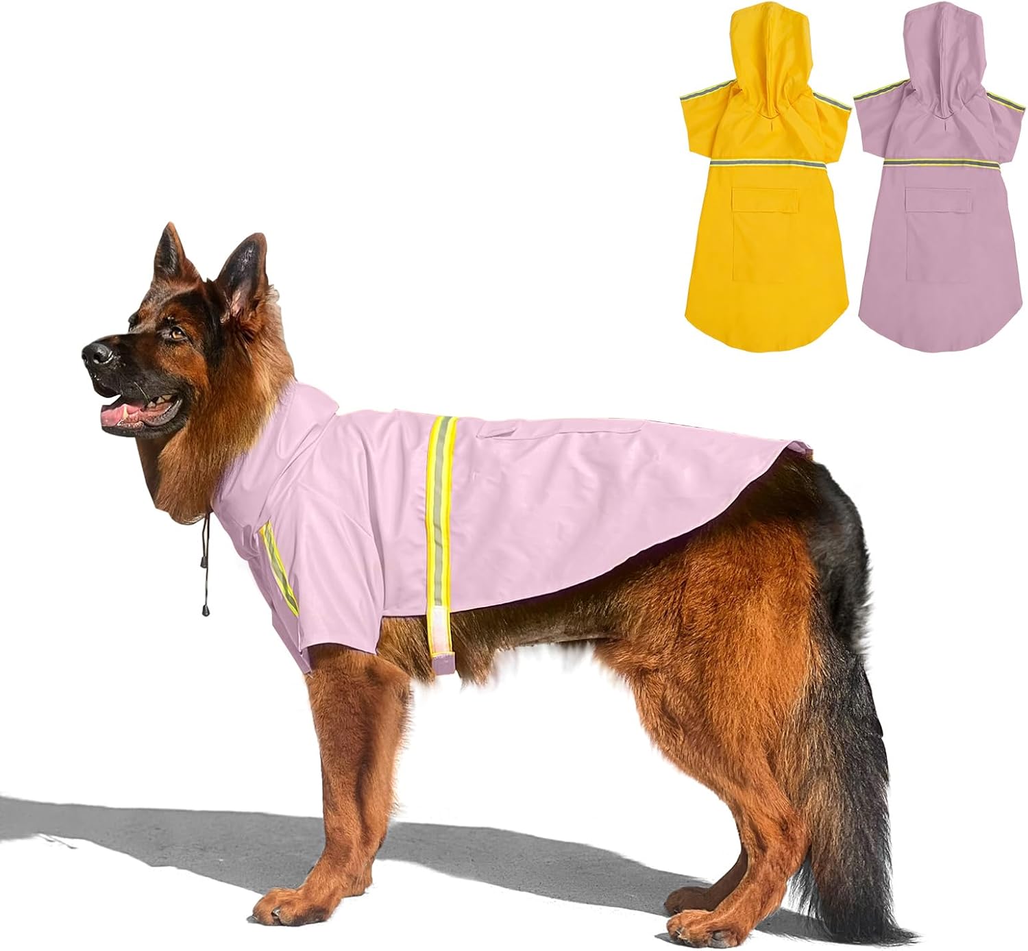 Dog Raincoat, Adjustable Water Proof Pet Clothes with Clear Hooded, Waterproof Lightweight Pet Rain Jacket Phocho Hoodie (Reflection-Pink, Large)