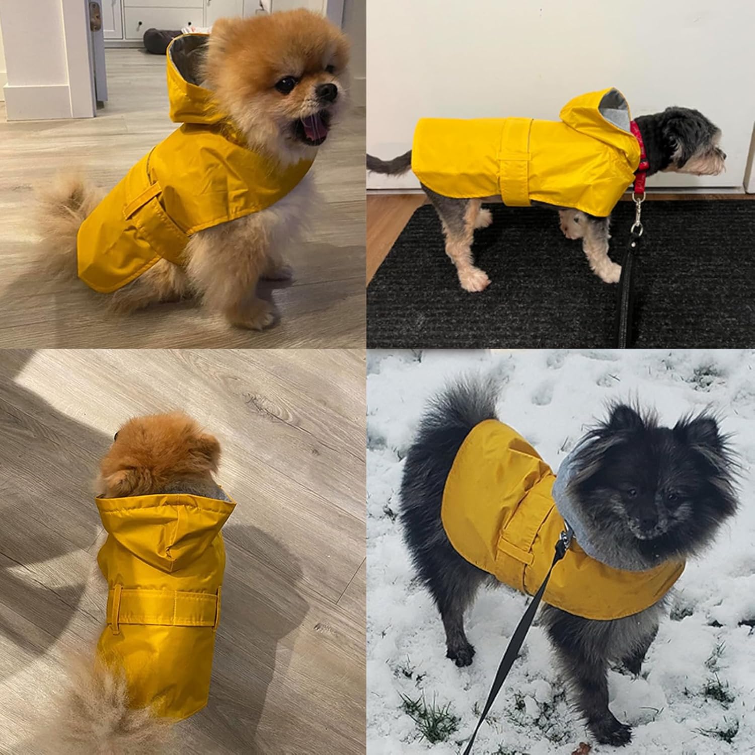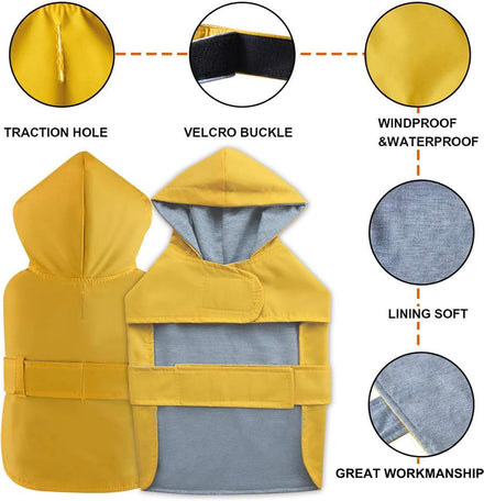 【Breathable and not stuffy, convenient and safe】This rain coat for dogs is made of high-quality double-layer fabric that ensures high breathability, ensuring that dogs can stay dry and not stuffy at any time.The harness hole behind the neck of puppy raincoat is a convenient connection between leash and collar.The small medium dogs raincoat will achieve all your fashion needs while maintaining optimal functionality.Highly visible bright color helps grab attention and safety