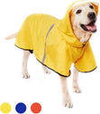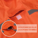 【Reflective & Compatible with Collar & Harness】The pet raincoat waterproof contains 2 openings on the upper back for dog collar & harness. There is a reflective stripe on the back to ensure your pets can be seen at night/in the dark.