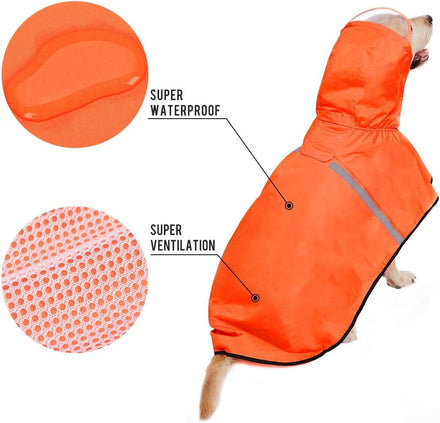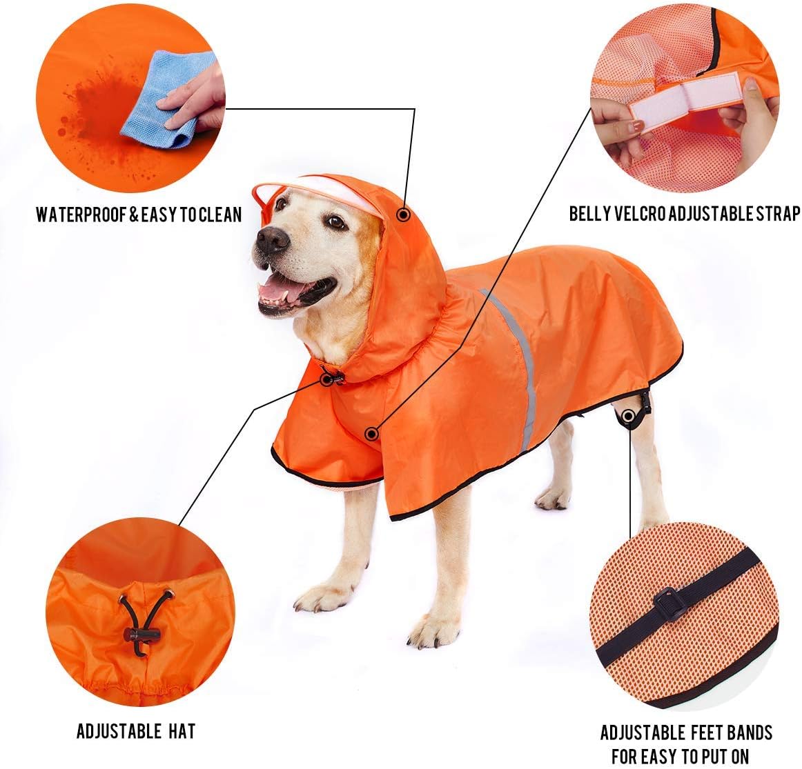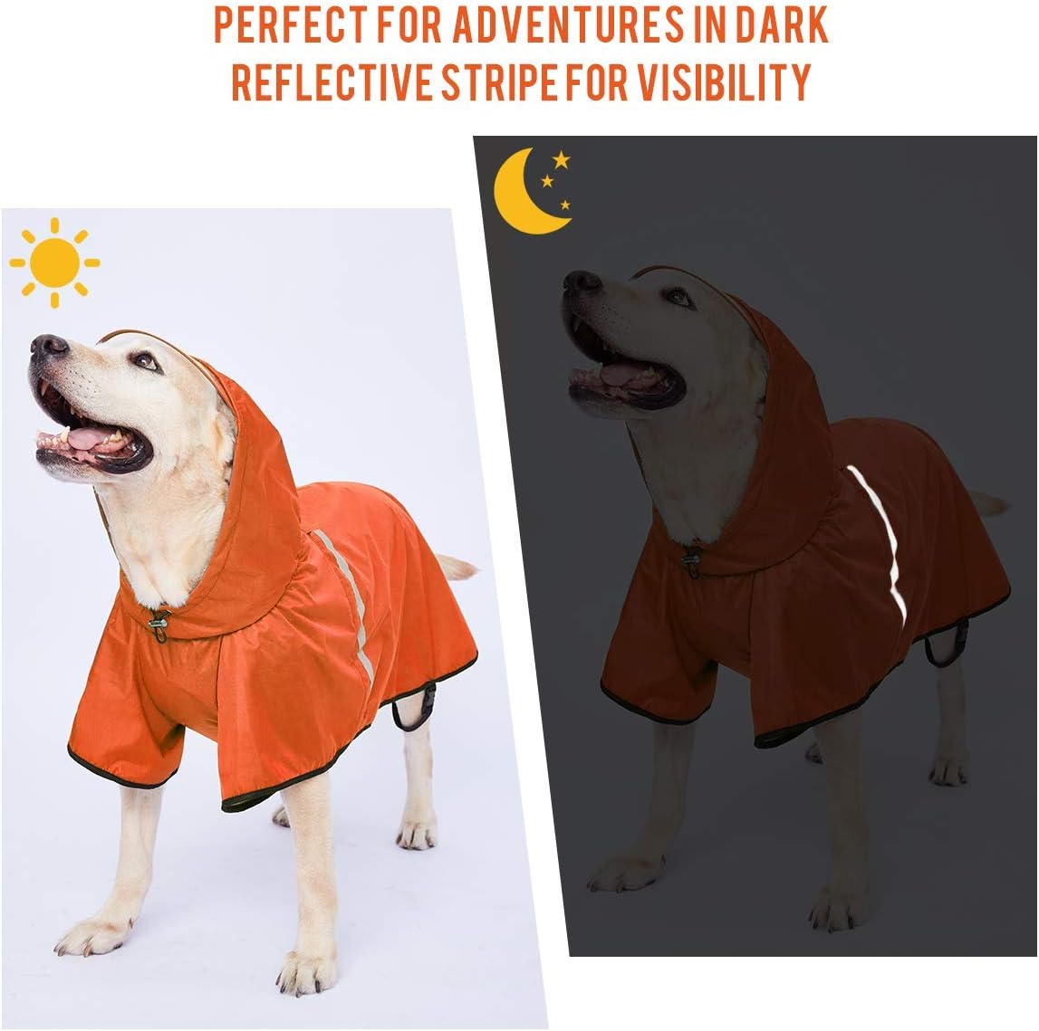 Dog Raincoat for Large Dogs Dog Rain Jacket with Adjustable Belly Strap and Leash Hole - Hoodie with Reflective Strip - Waterproof Slicker Lightweight Breathable - Easy to Wear, Orange 3XL
