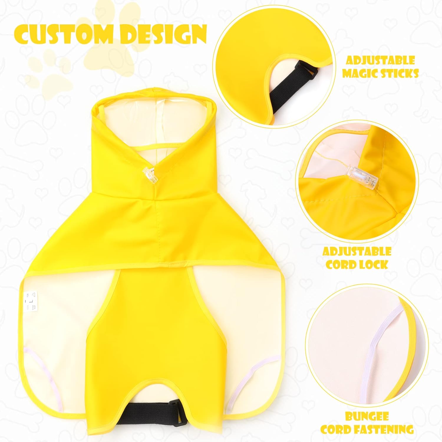 - 【Waterproof Fabric】This dog raincoat Made of 100% waterproof PU material to keep dog dry while walking in the rain or snow.Rainwater will not be absorbed or penetrate into the fabric,so you can adventure with your fur friends even in worst weather.