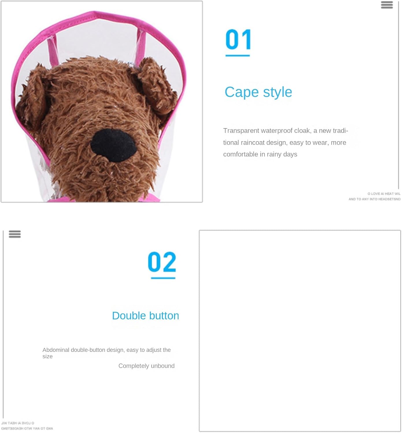 - TRANSPARENT RAINCOAT: Keep your furry friend dry with our stylish and durable transparent raincoat.