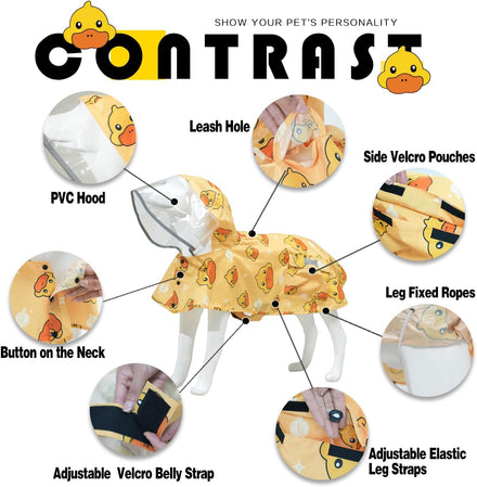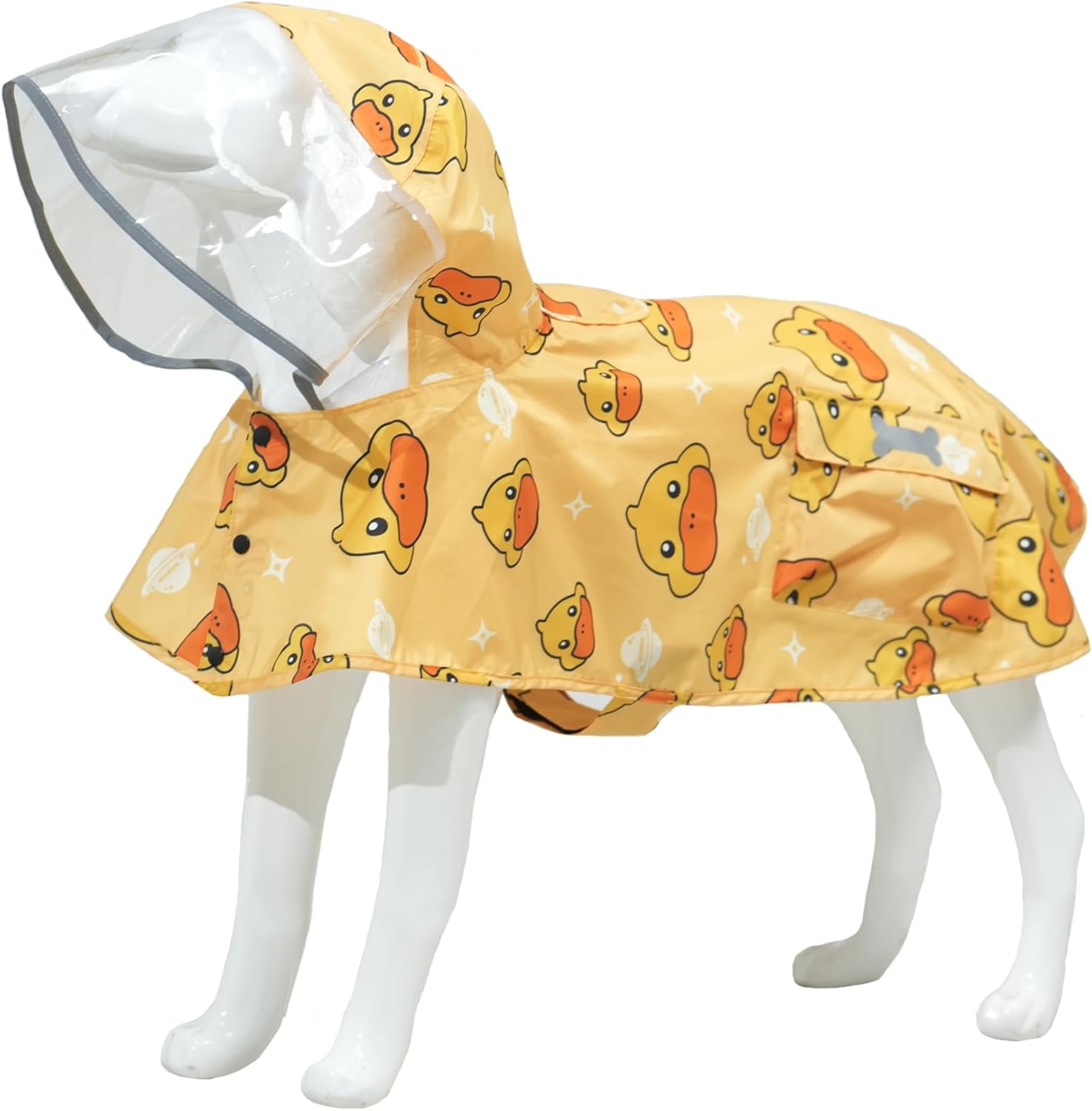 Dog Raincoat,Waterproof Rain Poncho with Hoodie, High Reflective Adjustable Pet Rain Jacket with Leash Hole for Small Medium and Large Dogs (Yellow Duck, X-Small)