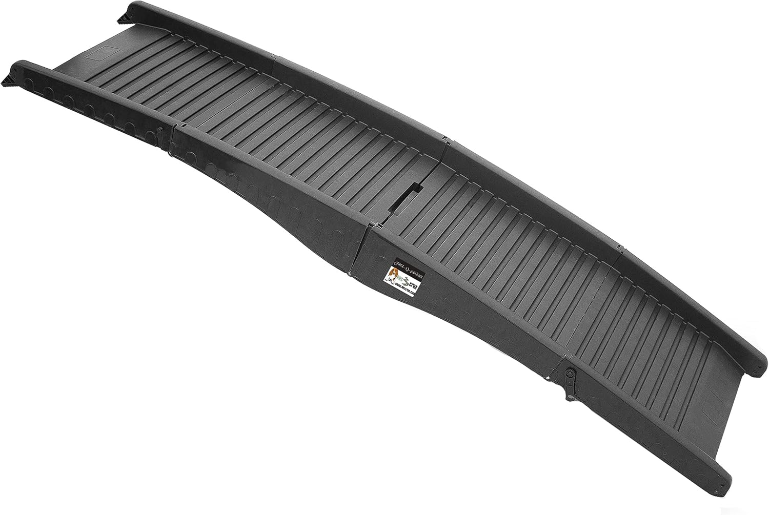 - EASY TO USE - Made of polypropylene plastic, this portable ramp is ready to use in seconds by simply unfolding it and setting the ramp in the desired position. The pet ramp helps your four-legged pal get in and out of most trucks, cars, SUVs, and RVs.