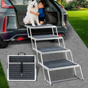 - DURABLE & LIGHTWEIGHT: The large dogs pet ramp is made of high grade aluminum which makes the folding dog ramp stairs durable but more lightweight, the foldable dog car ladder weighs only 14 lbs, but strong enough to support up to 200lbs, perfect for small, medium & large dog's indoor outdoor use when getting into a vehicle, car, SUV, truck, couch or high bed