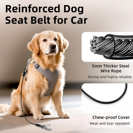 - Heavy Duty and Chew Proof: Made of 5mm thick high-strength coated steel wire rope, this dog seat belt for car is chew proof and sturdy. It can withstand a maximum pulling force of up to 300 lbs, and is stronger and more wear-resistant than ordinary dog leash. It is suitable for long-term use and provides long-lasting safety for your beloved pets.