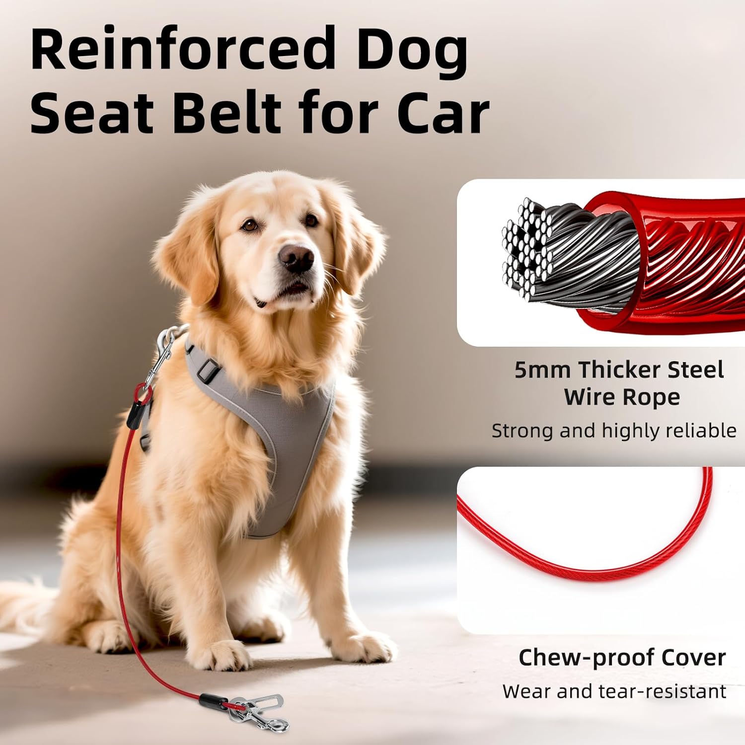 - Heavy Duty and Chew Proof: Made of 5mm thick high-strength coated steel wire rope, this dog seat belt for car is chew proof and sturdy. It can withstand a maximum pulling force of up to 300 lbs, and is stronger and more wear-resistant than ordinary dog leash. It is suitable for long-term use and provides long-lasting safety for your beloved pets.