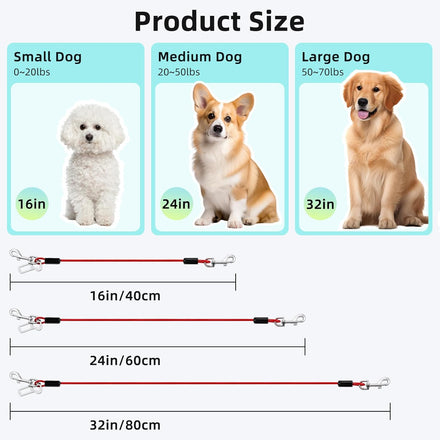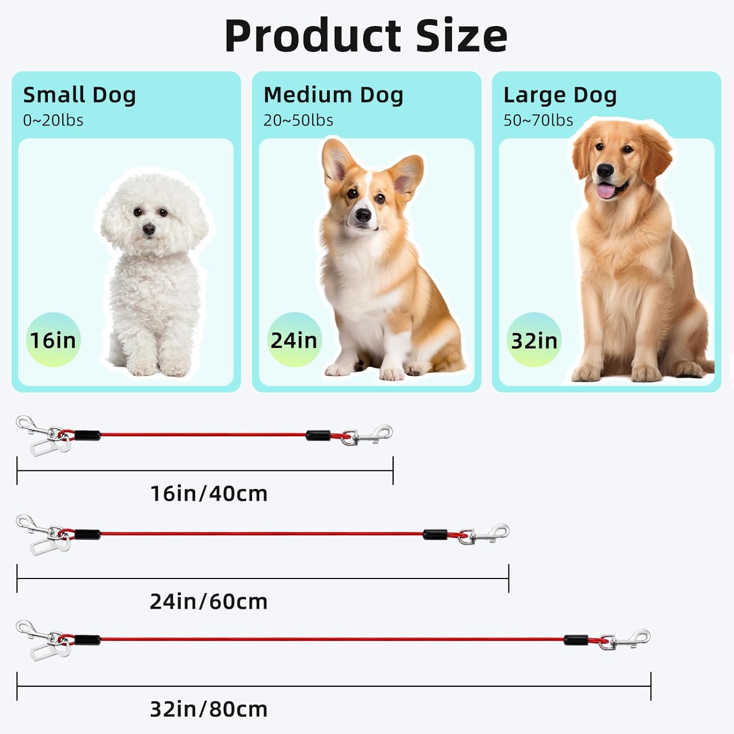 - Multiple Sizes for Different Needs: The dog car leash is available in three lengths: 16 inches, 24 inches and 32 inches for small, medium and large dogs. Whatever the size of your pet or the space in your car, you can find the right one and start a peaceful and enjoyable journey with your pet.