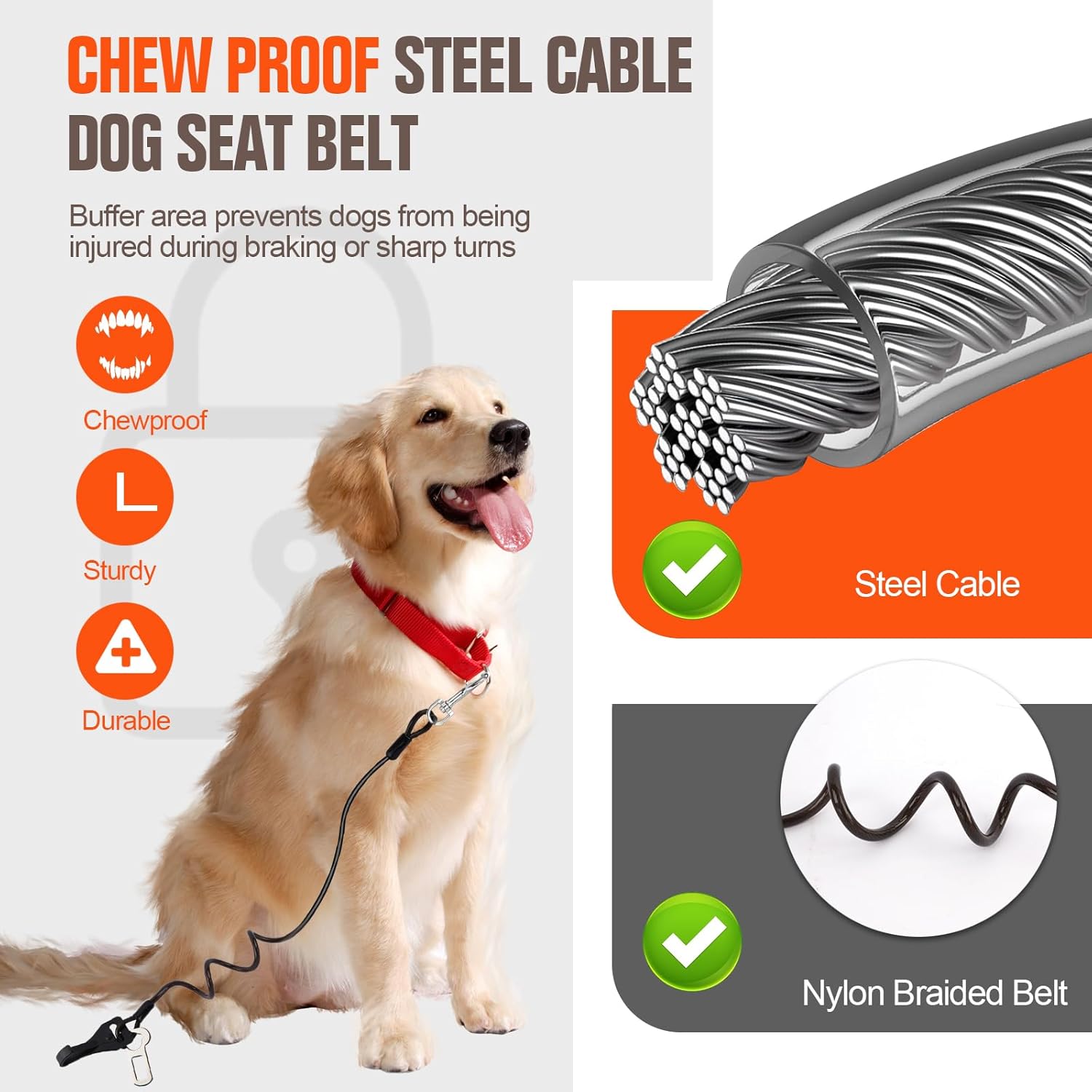 - CHEW PROOF & 2-In-1 DESIGN --- This new version dog seat belts is made of steel cable which is extremely durable.Different with the fabric belt, the steel braided cord dog car leash is non chewable ,even for an aggressive chewer. CHZUOBER Seat belt for dogs can be used to not only hooked to your vehicle’s latch bar, but also attached to the car seat belt buckle.