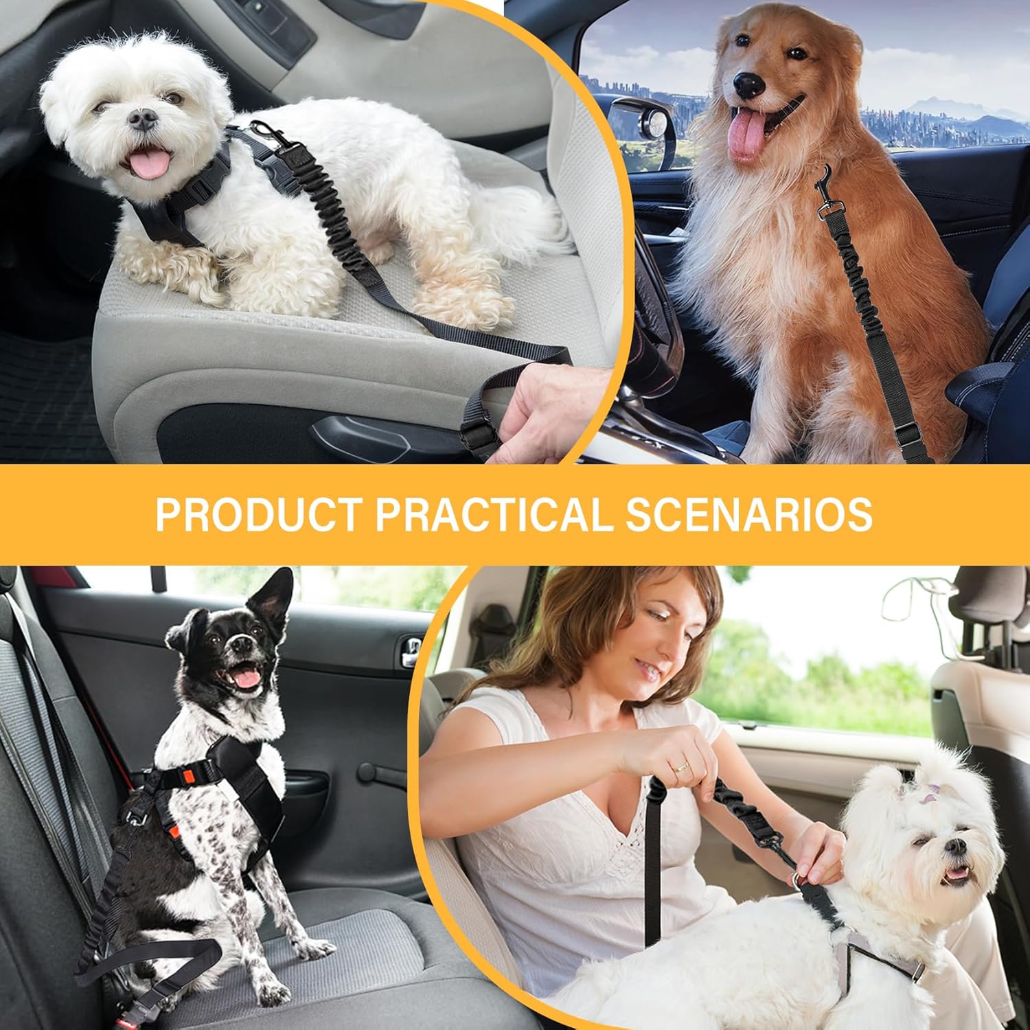 Dog Seat Belt Retractable Dog Car Harness 1 Pack Adjustable Pet Safety Belt with Elastic Bungee Buffer Heavy Duty & Durable & 360 Degree Swivel Dog Seatbelts