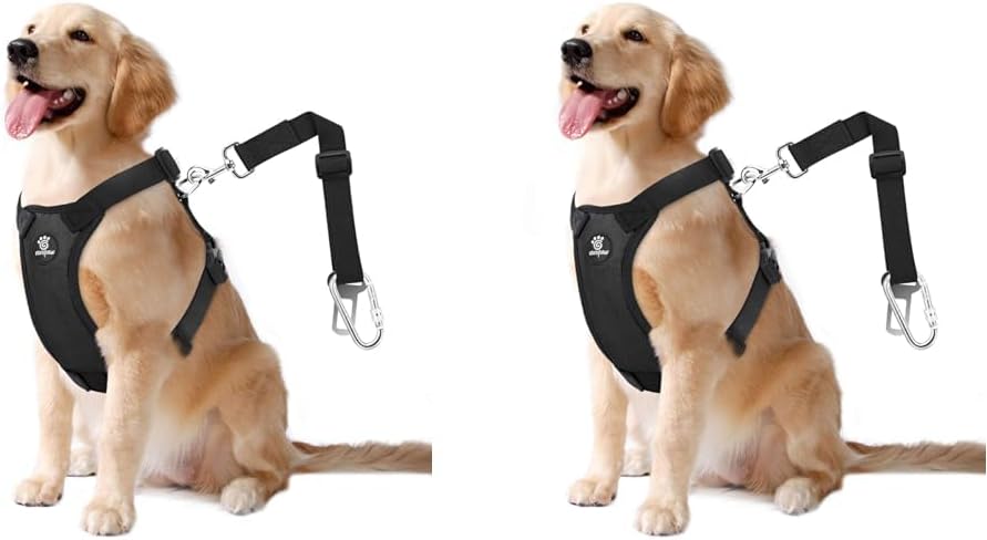 - EASY TO USE: After the pet wears it, hook one end of the safety belt with it and insert the other end into the safety belt socket. Equipped with a carabiner to better resolve the problem pf buckle’s compatibility, universal fit for the most of car models.