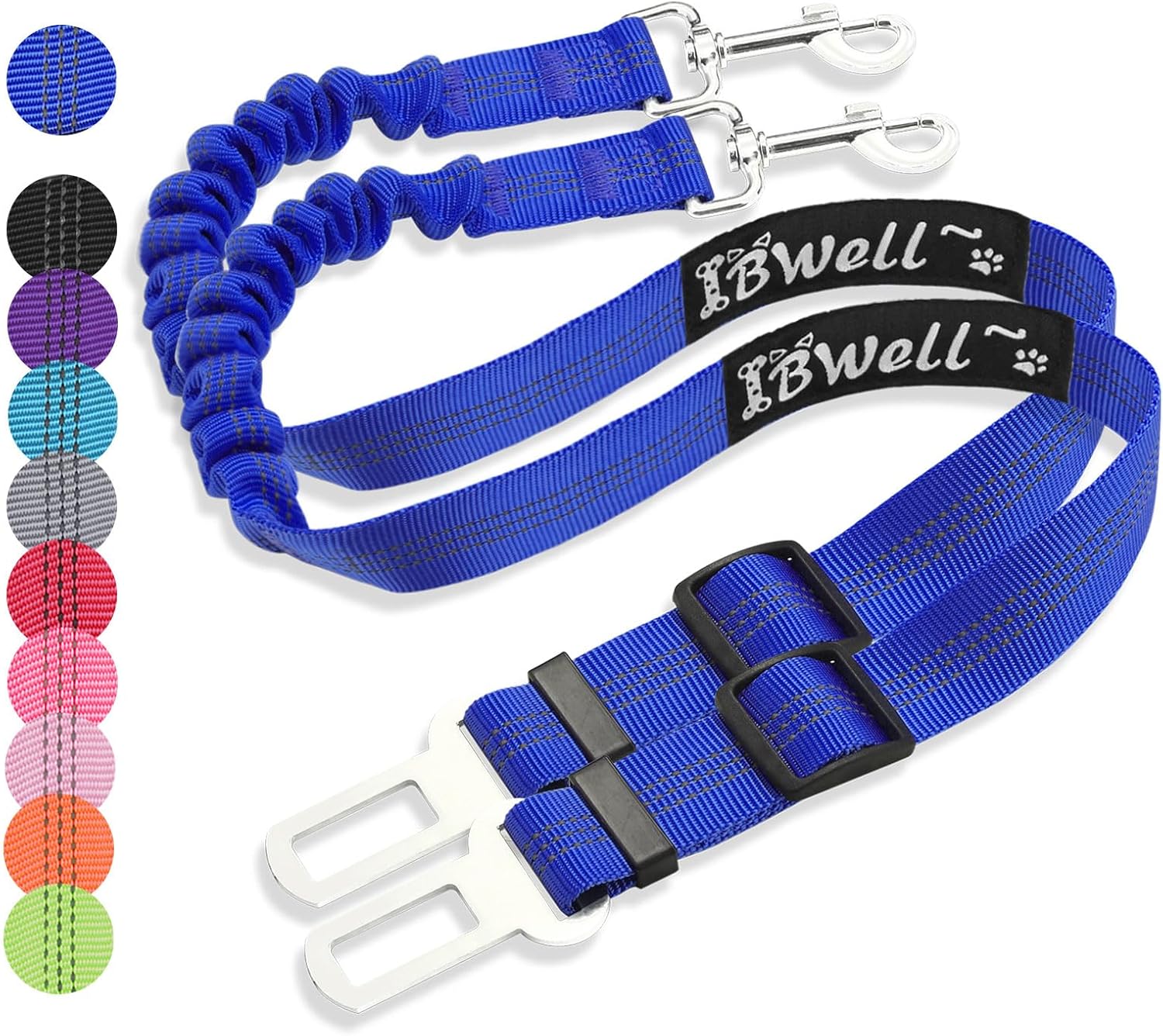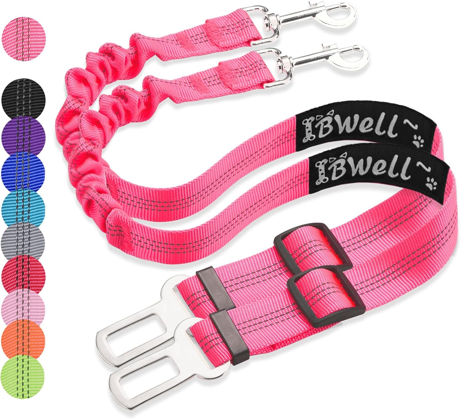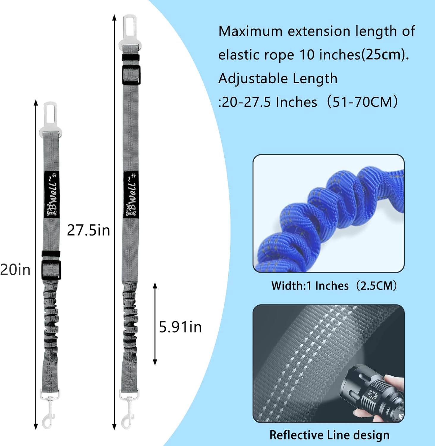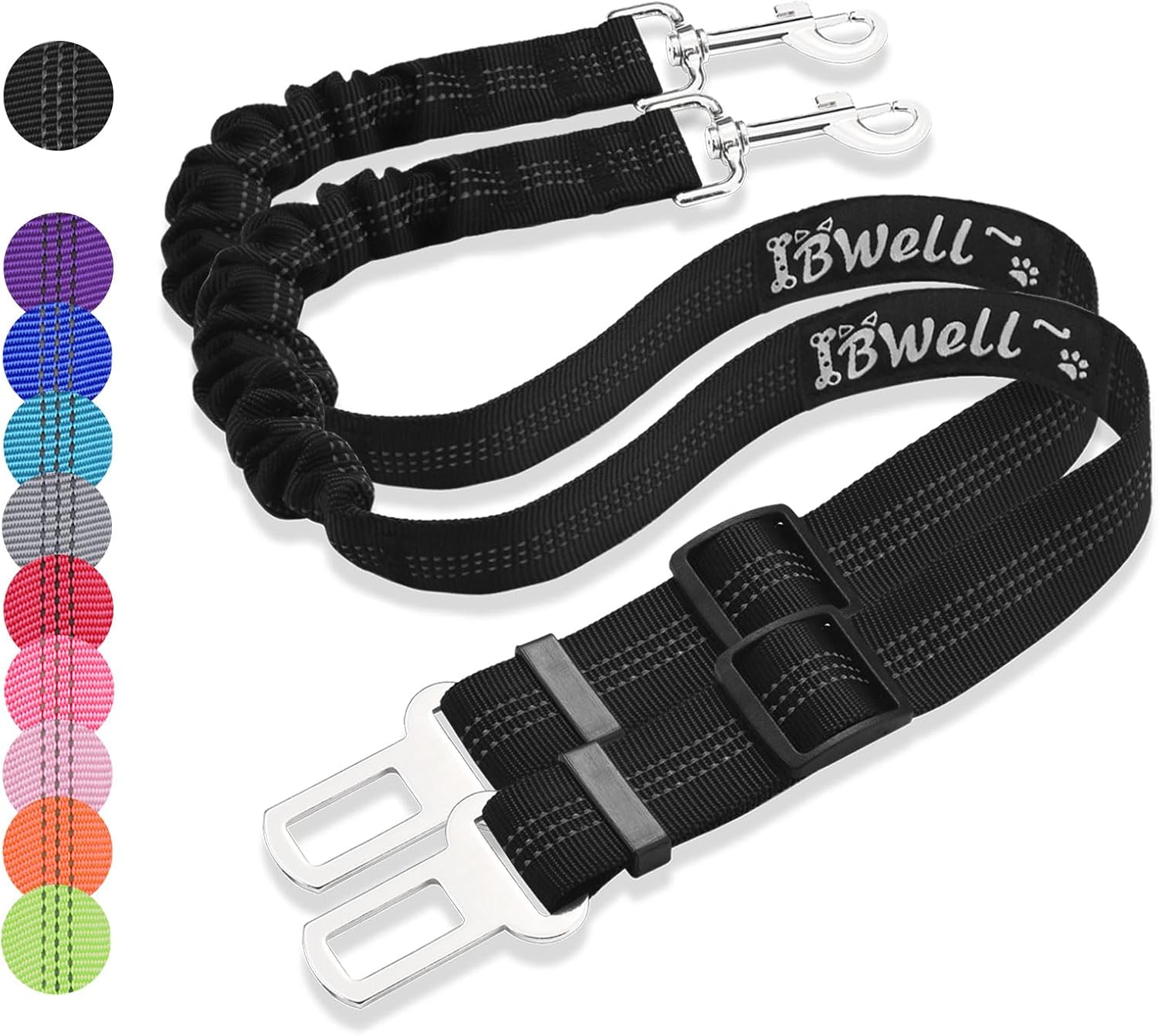 IBWell Dog Seat Belt for Car with Elastic Bungee Leash, Car Leash for Dogs, Dog Car Seat Belt for Dogs Adjustable length - 20-27.6 inch. Adds 6” at full stretch. sturdy and secure, reduces pressure on dog's neck when braking.