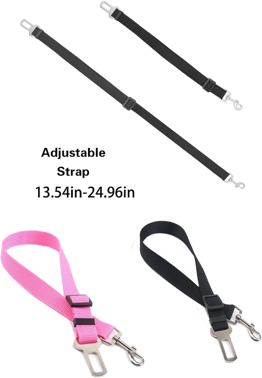 - [Adjustable] : Dog car seat belts are designed to give your dog the comfort and safety she/he needs in the car. It can be easily adjusted from 13.5 to 24.5 inches in length to suit every size of dog, giving them a suitable space to move around.