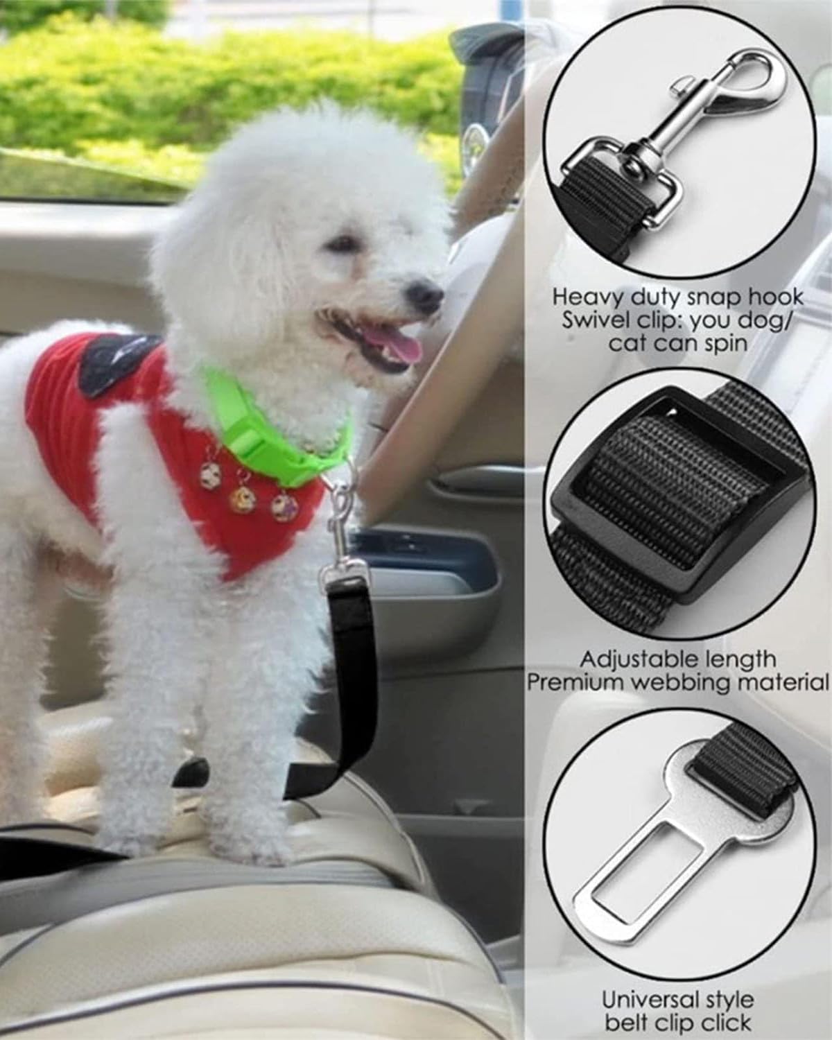 - [Safe activities for dogs ] :This tether can be easily attached to your car's seat belt system to keep your pet restrained and safe. This also allows your dog to sit, stand, or lie down comfortably in the car without distracting the driver.