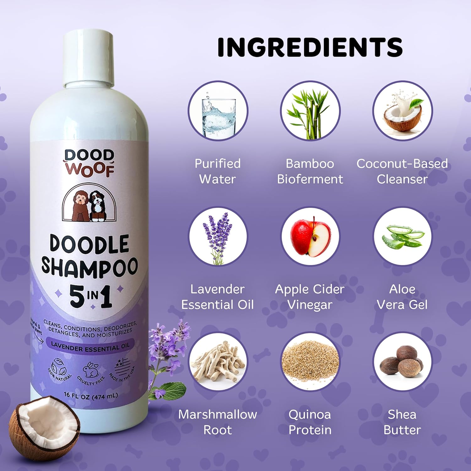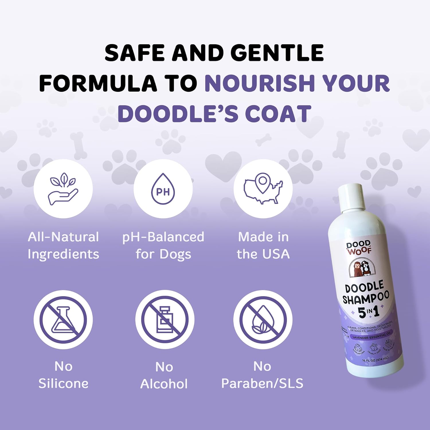 - Effortless Bath With 5-in-1 Formula: Experience how this 5-in-1 dog shampoo and conditioner CLEANS, CONDITIONS, DEODORIZES, DETANGLES, AND MOISTURIZES your Doodle's coat. This detangling shampoo for dogs delivers coat care without the need for multiple products.