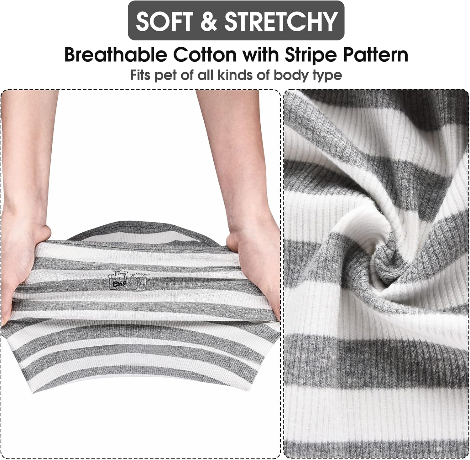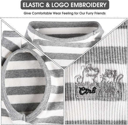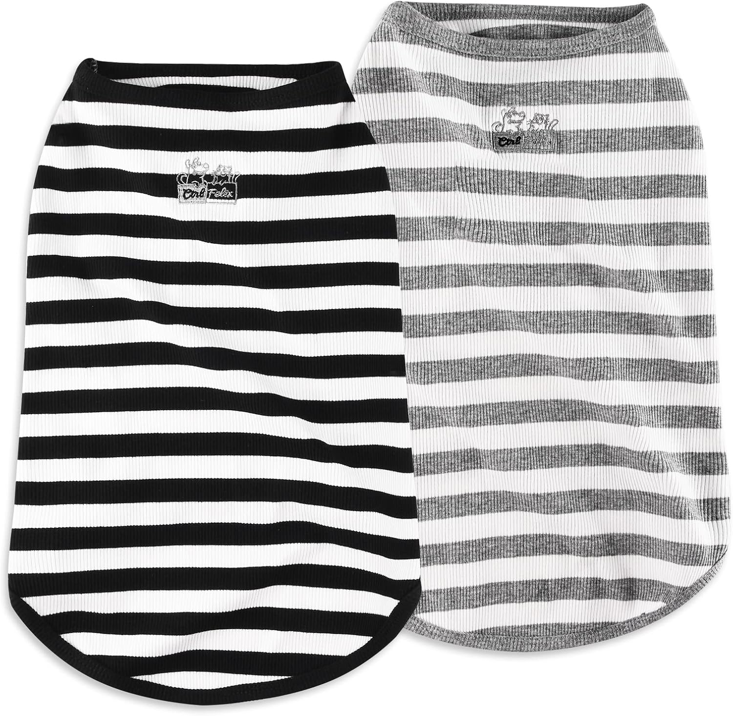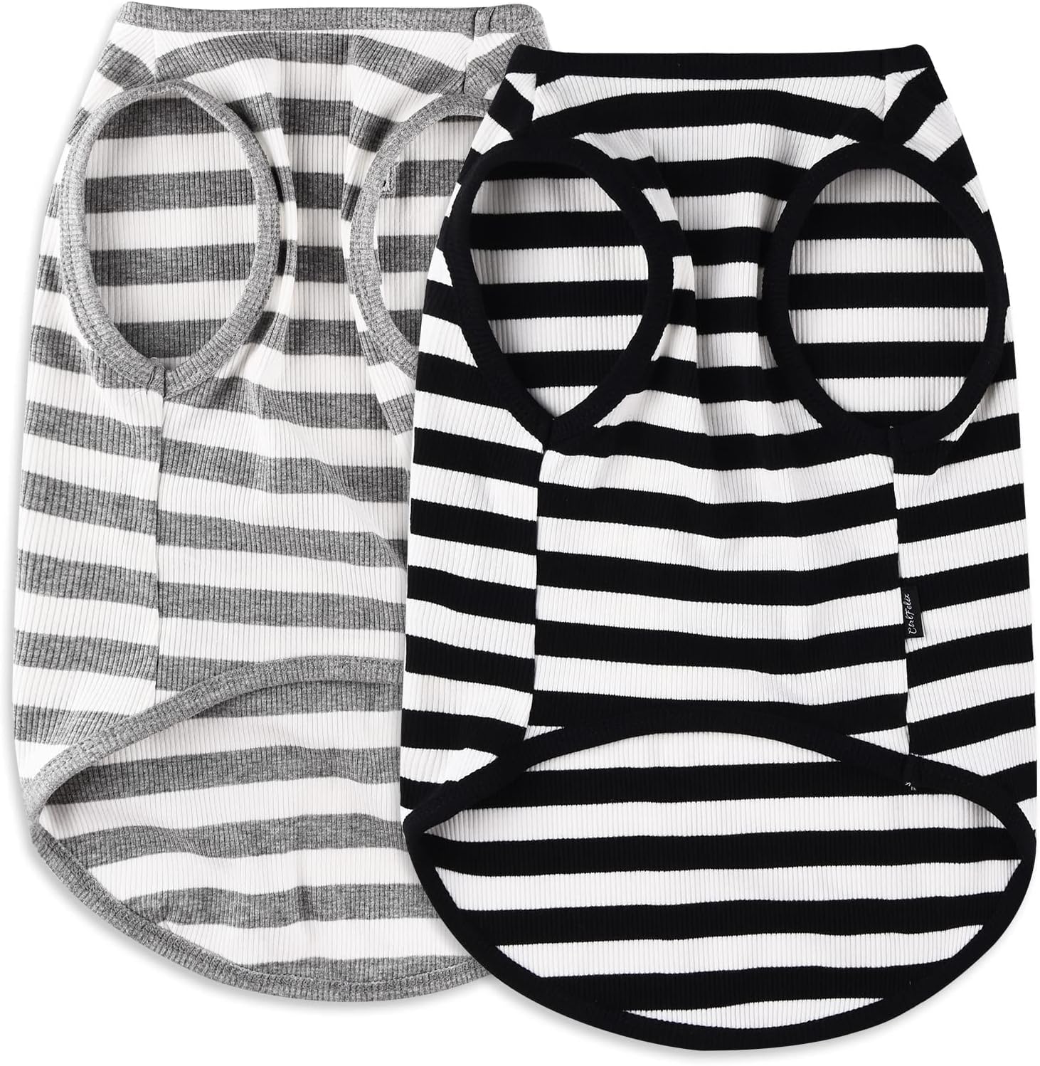 Dog Shirt Striped Clothes Stretchy Vests for Small Medium Large Dogs Boy Girl Cat Apparel Soft Cotton Puppy T-Shirts Lightweight Pet Tank Top Kitten Outfit Pack-2 Black & Light Grey L