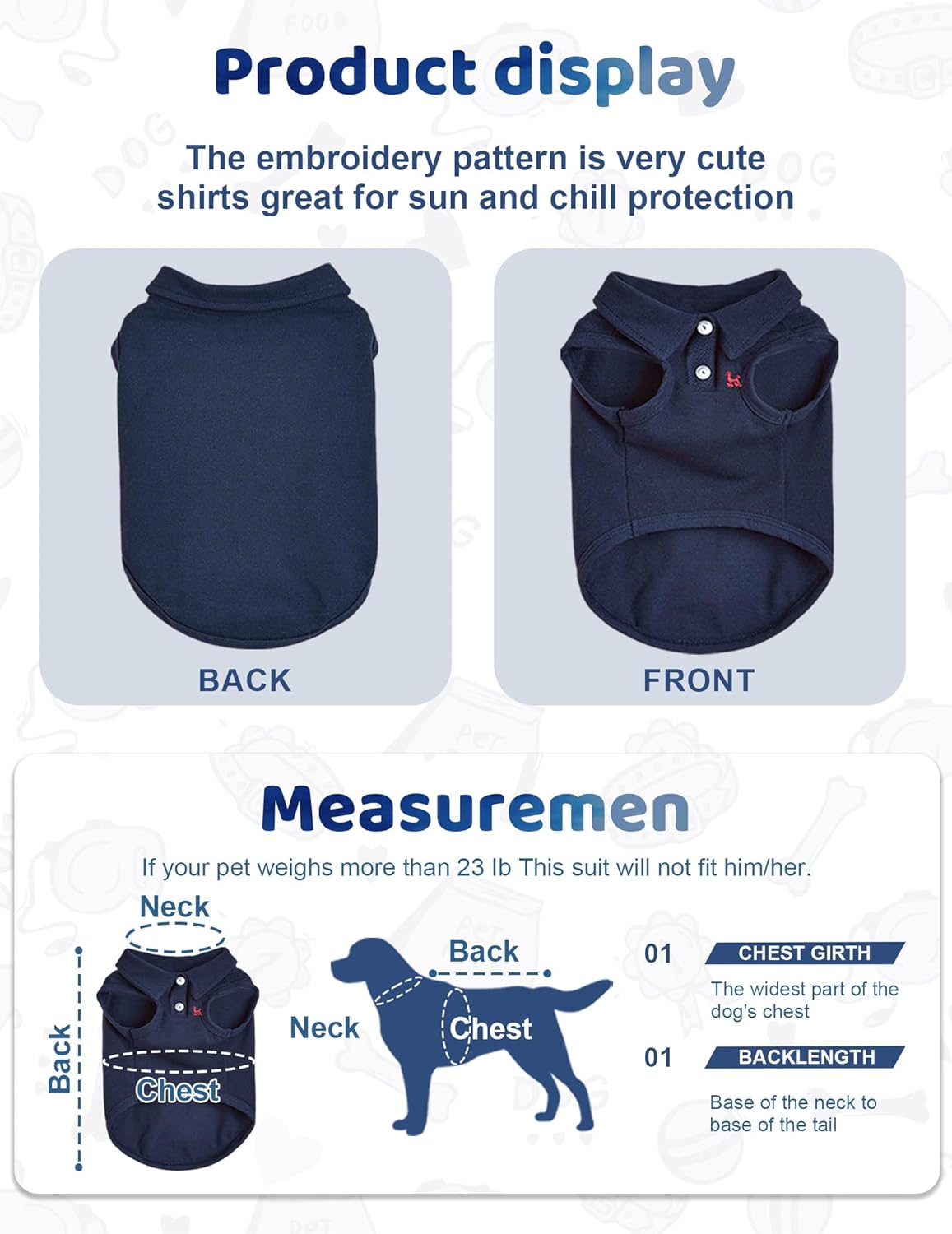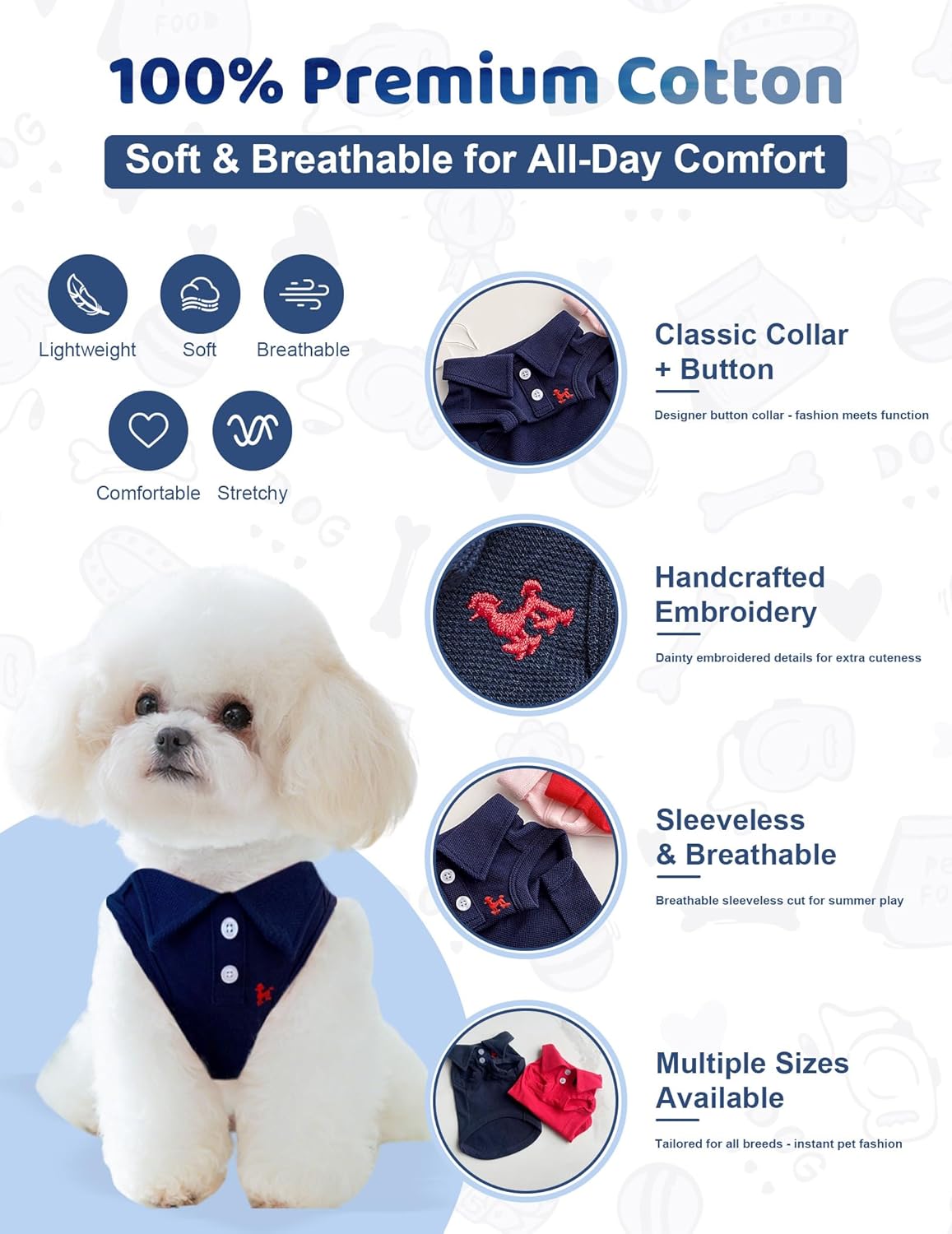 - Breathable & Comfortable Fabric: Crafted from lightweight, breathable fabric, this dog polo shirt features advanced moisture-wicking technology to keep your pet cool and dry. The ultra-soft, breathable fabric prevents skin irritation while machine-washable construction ensures easy care - perfect for energetic pups!