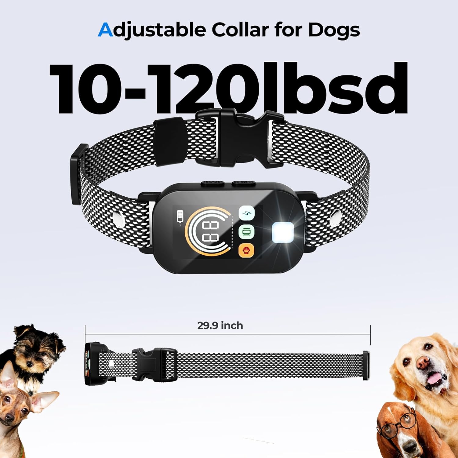 - 2 Light Mode:Keep your nighttime walks worry-free with our shock collar for dogs.Use the quick-flash mode to instantly locate your pup in the dark, or switch to steady white light for leash-clipping, poop pickup, or wooded area adventures. See and be seen all night long.