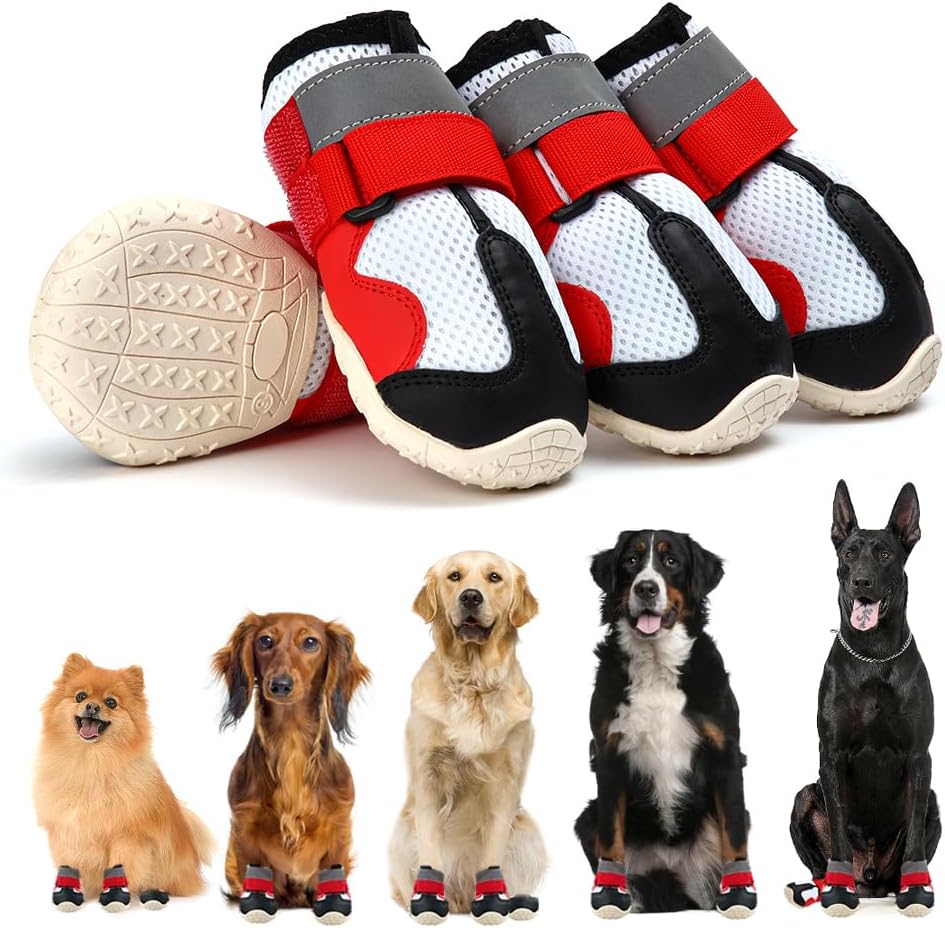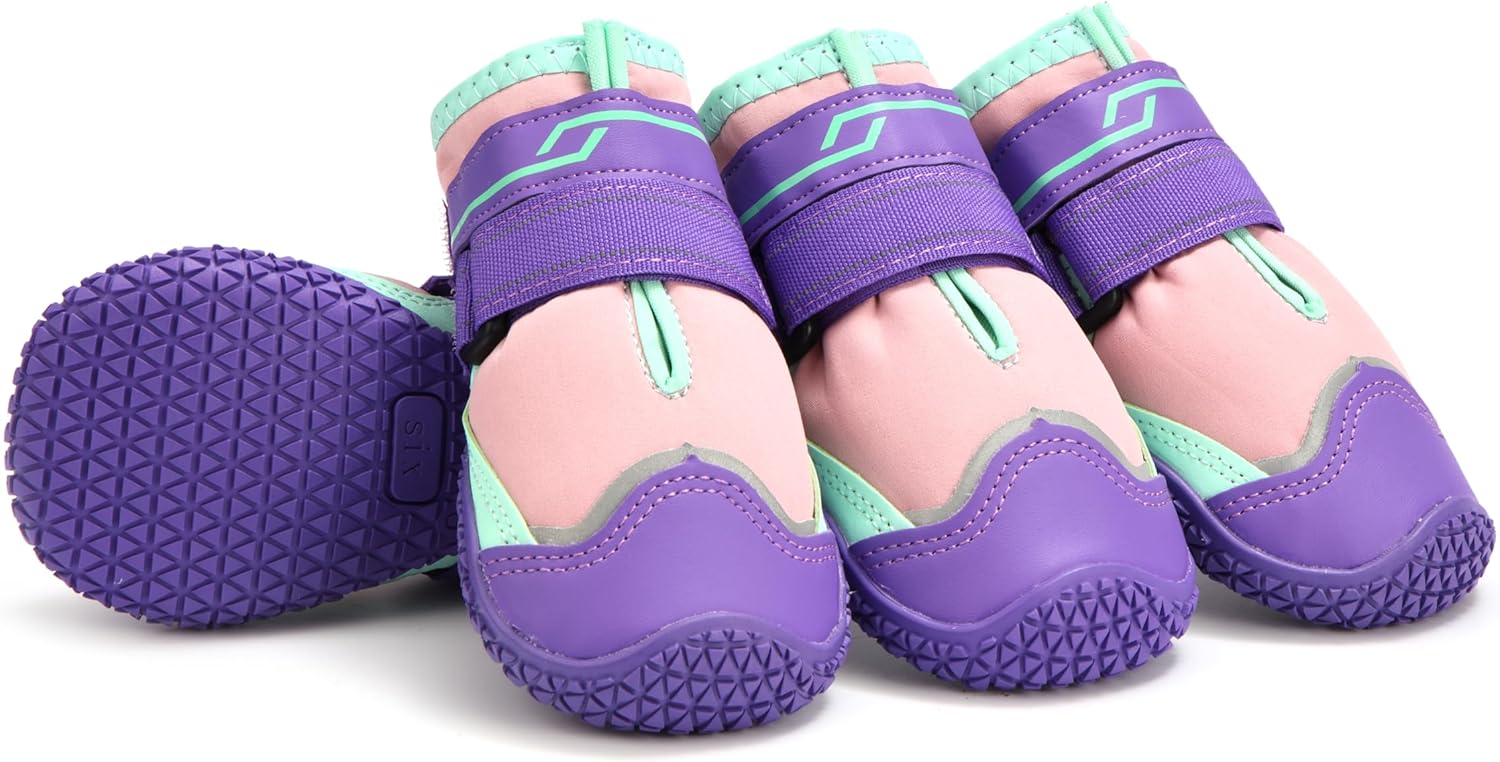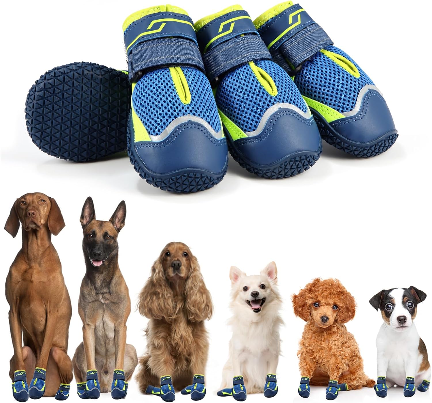 - 【Durable & Healthy Material】: The comfortable dog boots are made of waterproof durable soles and high quality wear-resistant nylon material. Rugged shoes for dog protect the dog paws safely from walking and jumping on sharp surfaces, slippery boards, and wet dirt ground.