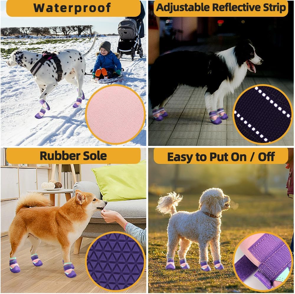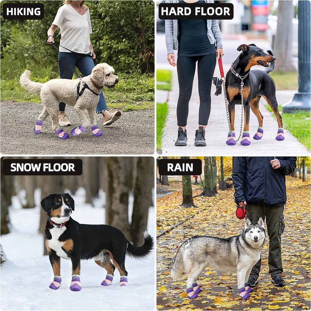 - 【Anti-Slip】: Breathable paw protection for dogs provide strong stability and traction. The tough anti-slip sole is made of natural rubber and the cosy sole pattern can provide a great anti-slip effect. Ideal for walking, camping, hiking, hunting. rainy and snowy weather indoors and outdoors activities.