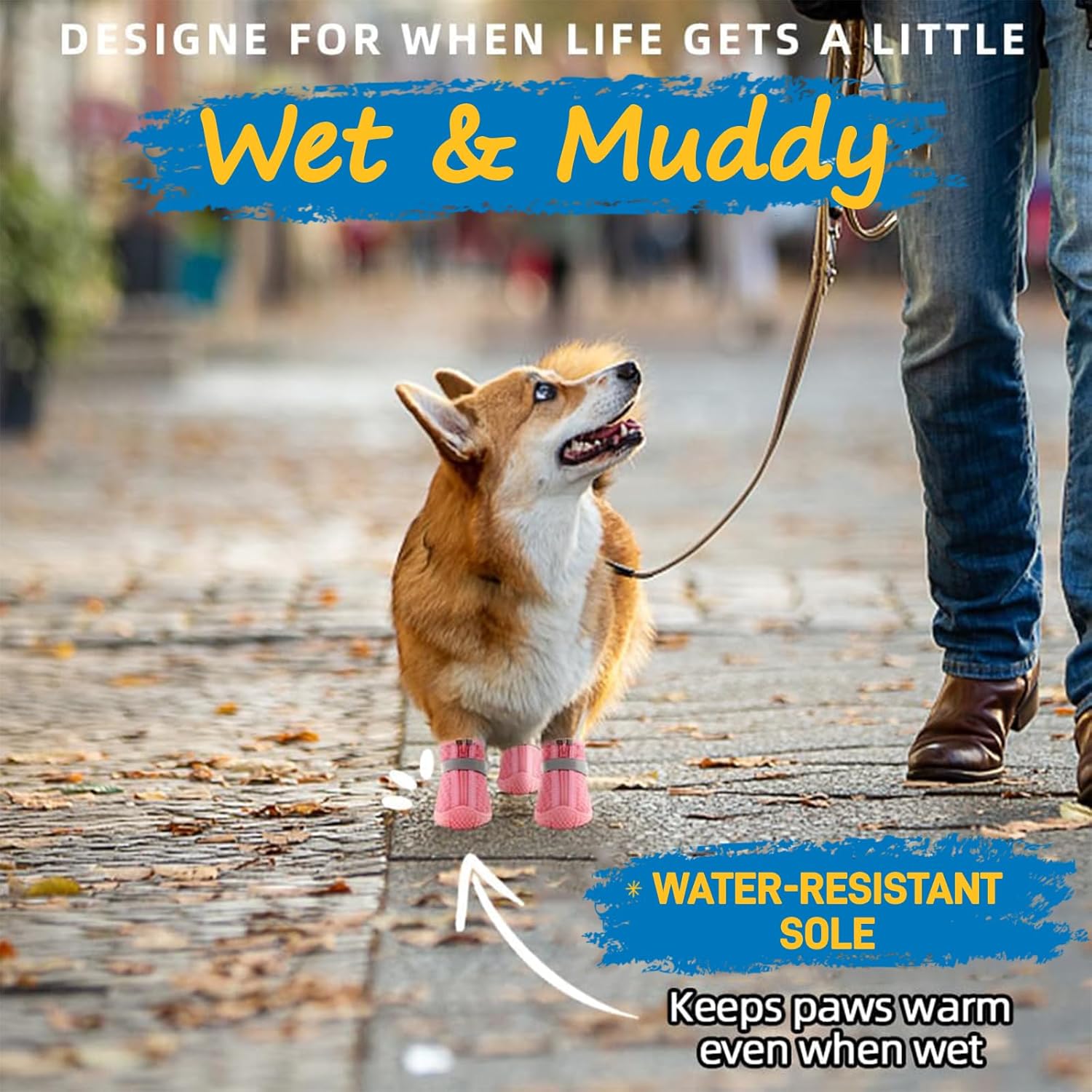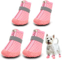 Dog Shoes for Small Dogs, Waterproof Dog Boots Paw Protector for Hot Pavement Winter Snow, Dog Booties with Reflective Strips Rugged Anti-Slip Sole for Hardwood Floors Outdoor Walking Pink Size 3