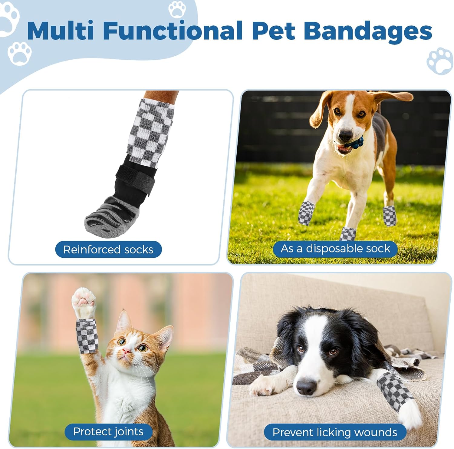 【Muti-Use,Dog Paw Protection】 Our dog boots are dog accessories that prevent dogs from licking their paws and prevent damage to your pet's paws from hot or cold ground. Meanwhile the vet wrap can be used as a disposable dog socks or dog booties to provide extra protection for your dog.