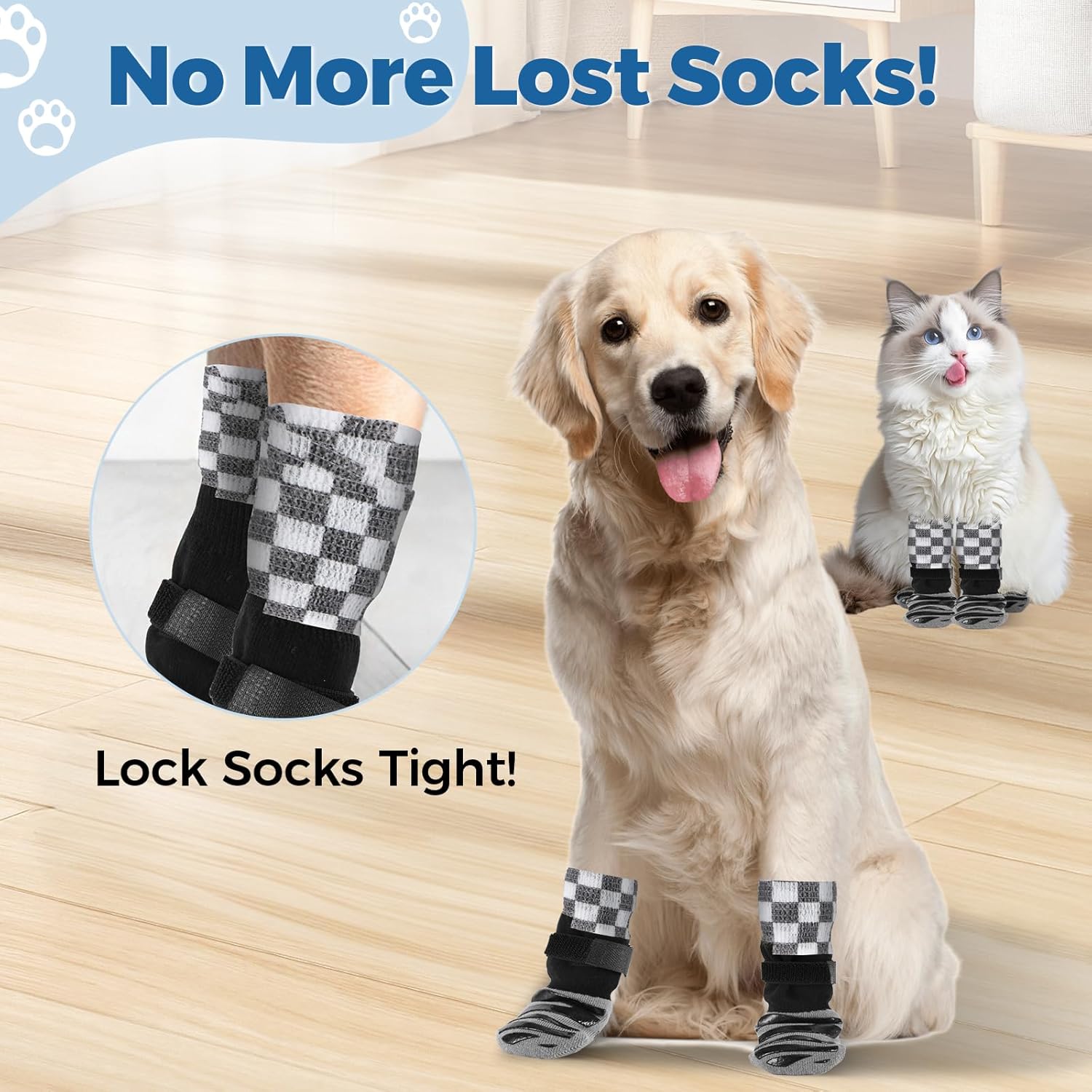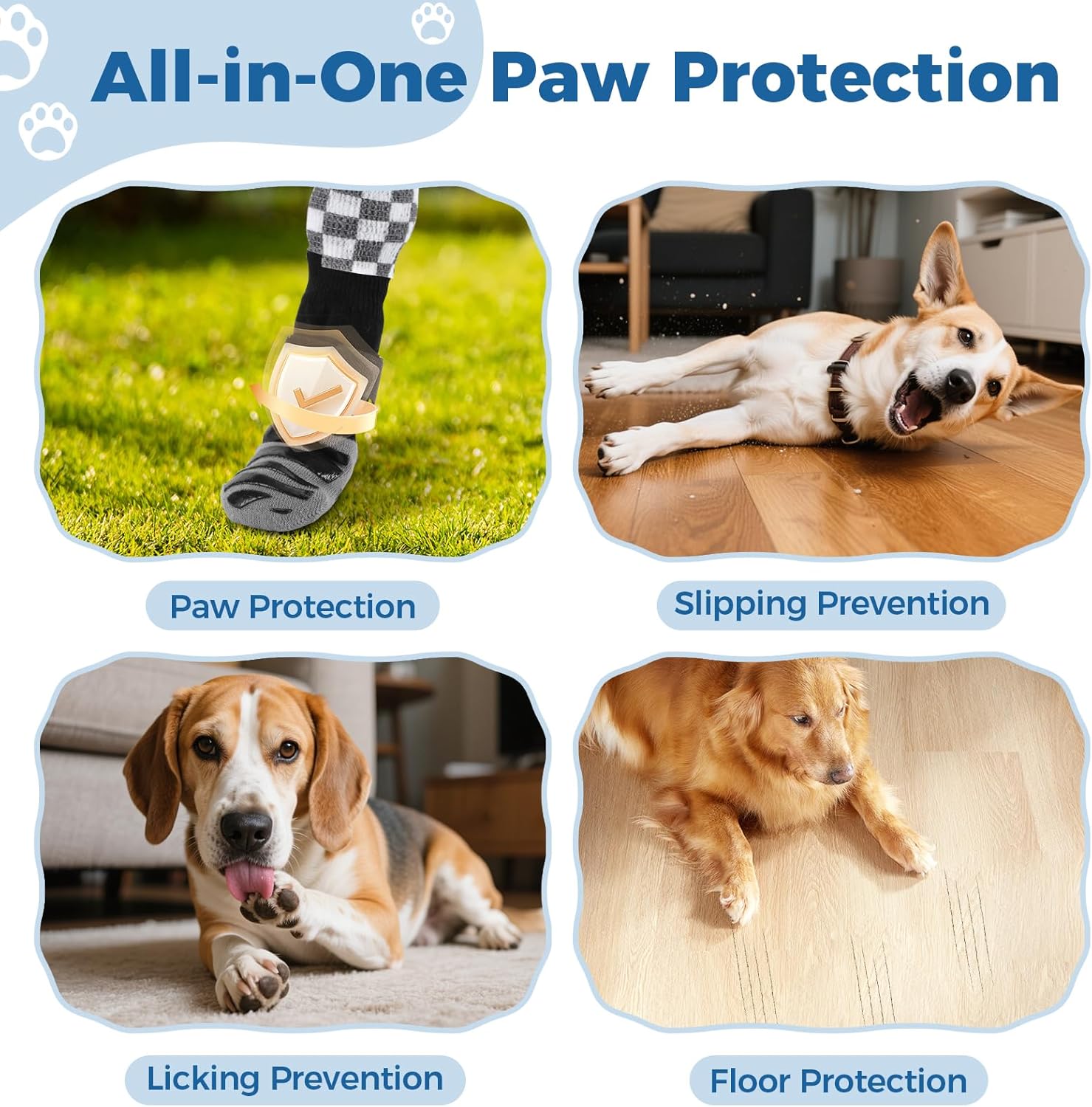 Dog Socks for Hardwood Floors Anti Slip | Pet Socks to Prevent Licking Paws with 6 Pack Vet Wrap | Dog Boots & Paw Protectors for Small/Medium/Large Senior Dogs | Cat Paw Socks/Mittens