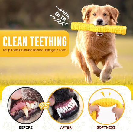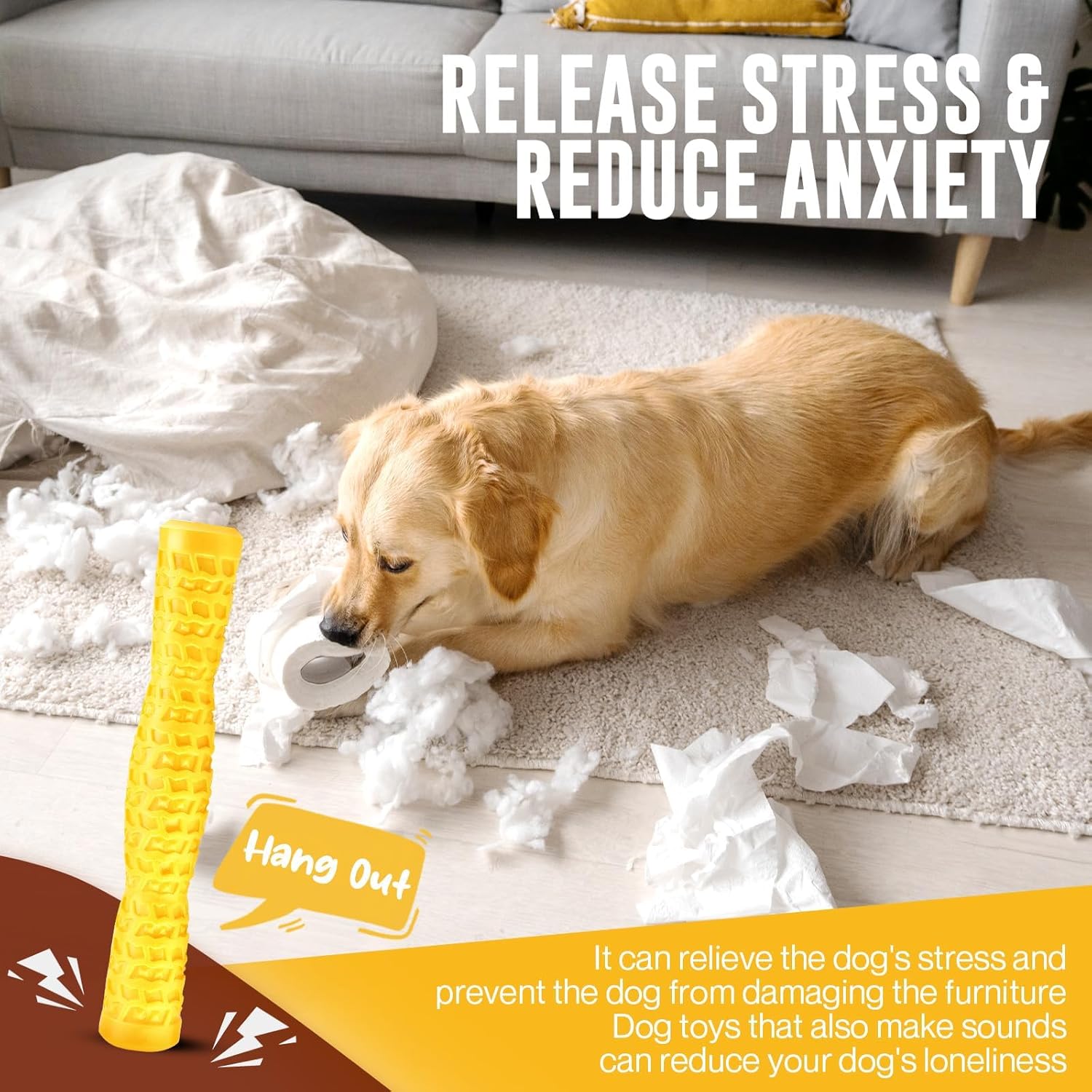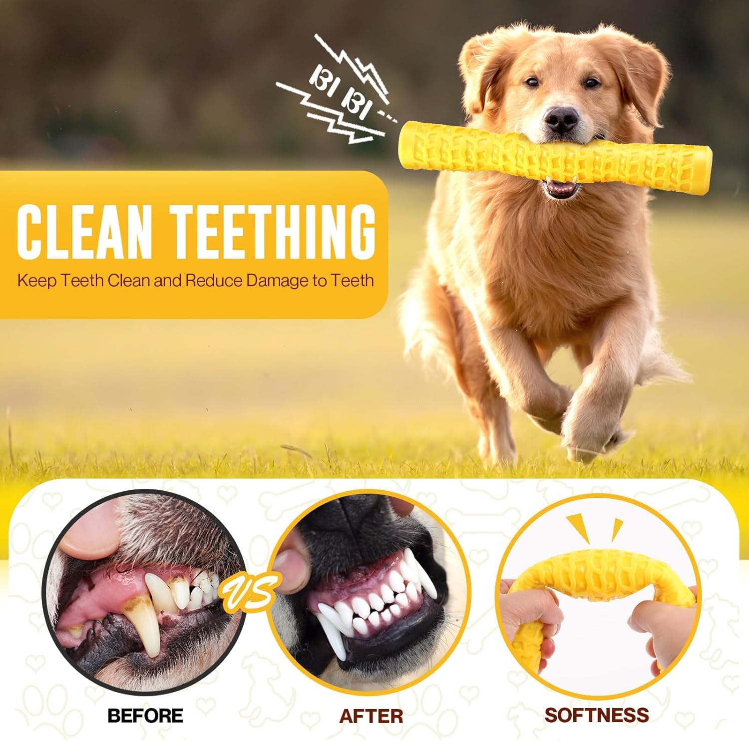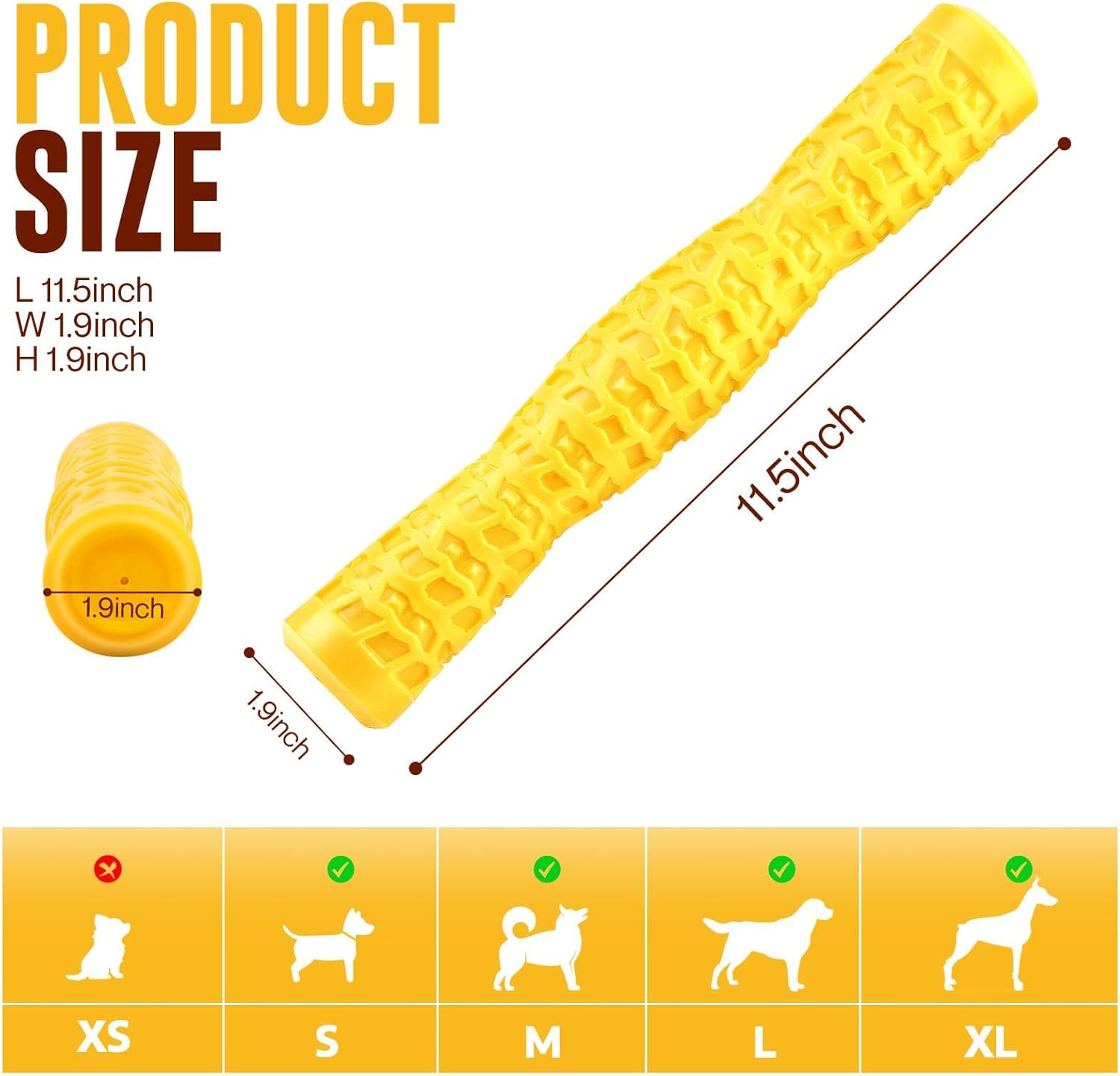 - 🐶【Help Dog Grow】The textured surface of the dog stick helps promote dental health by massaging your dog's gums and cleaning their teeth as they chew and play. The dog stick features a built-in squeaker that emits an enticing sound, capturing your dog's attention and keeping them engaged during playtime.