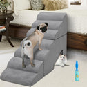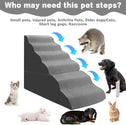 - Upgrade The Ladder: Higher Height of each ladder and adjust the proportion of each step. More wide and deep steps are helpful for reducing the strain that constantly jumping up and down onto bed,sofa or car can have on your pet's legs,and dog steps will not shake and slip during use. The inner core of the ladder is also replaced by high-density sponge, which has good support and no worry about bumping, so as to ensure the safety of pets