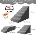 - 2 in 1 Special Design: This dog ramp for bedside comes in 2 parts not only can be a pet stair for different heights but also can be a pet bed for your furry baby napping. The 4 tiers pet steps is perfect for high bed 20 inches tall and the total 6 tiers is 30 inches tall so it can be used up to 30-35 inches higher bed. And 2 tiers pet steps is suitable for a small chair or low sofa or used as a pet sleeping bed