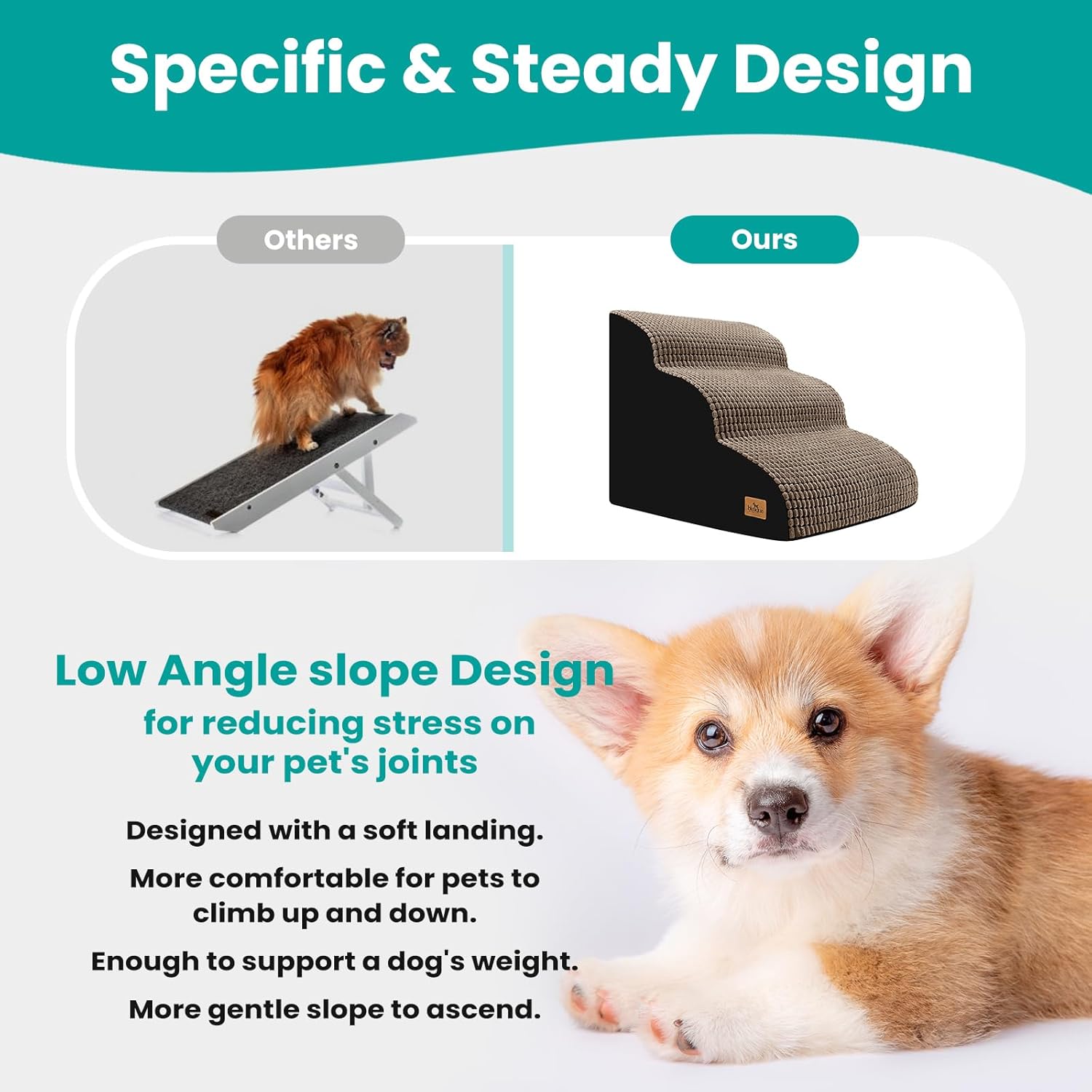 - Protecting Pet's Joints: Our dog stairs are designed with comfortable and gentle ramp steps to help your pet get in and out of bed, couch or other furniture more easily and to protect your pet's joints and knees.