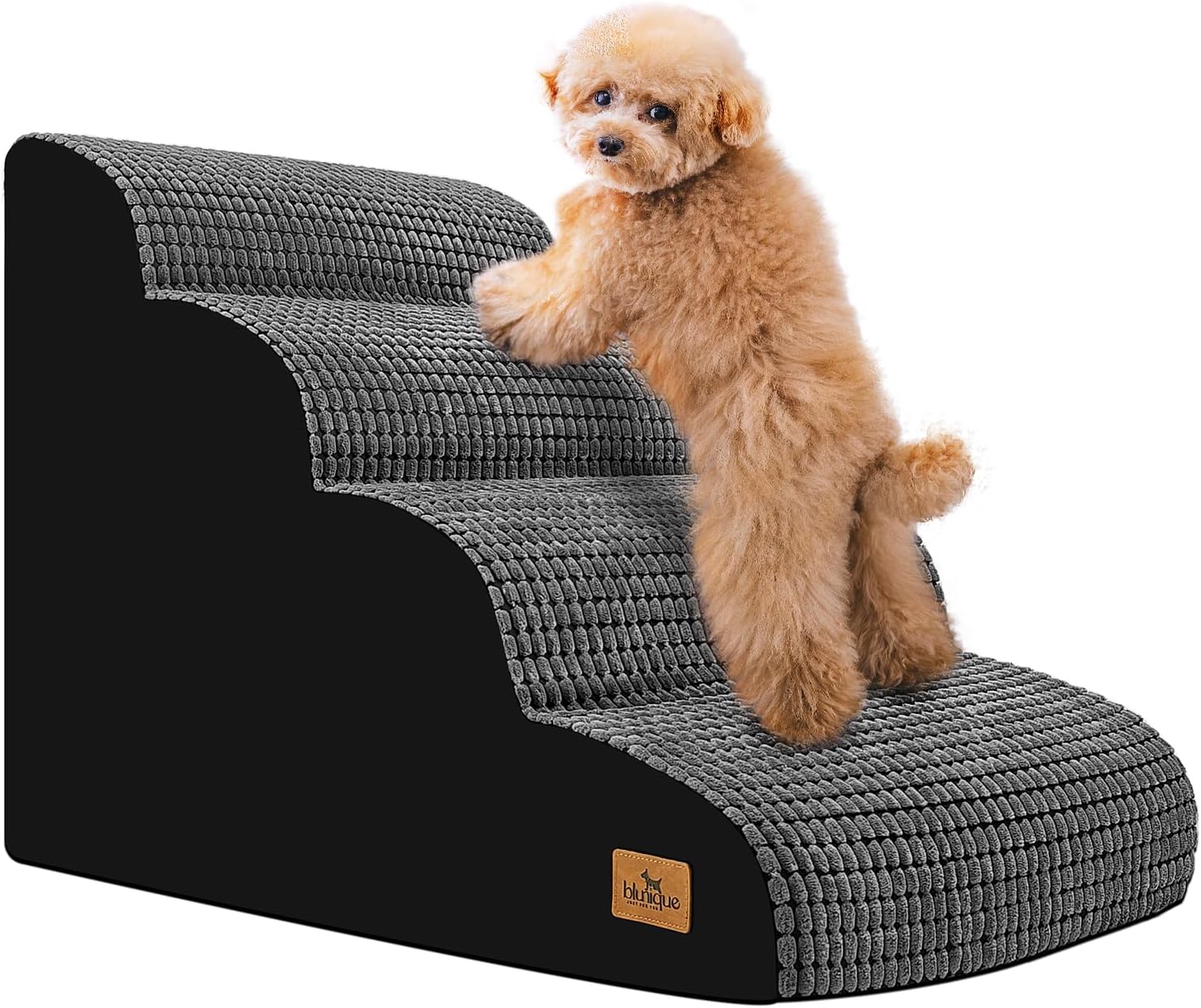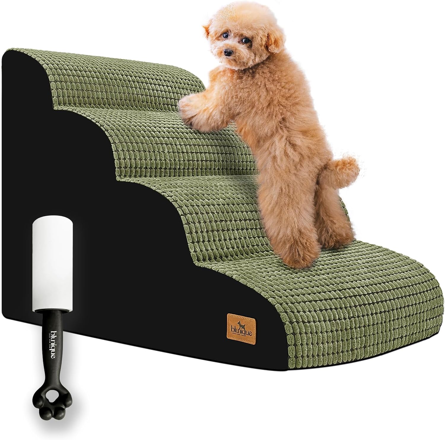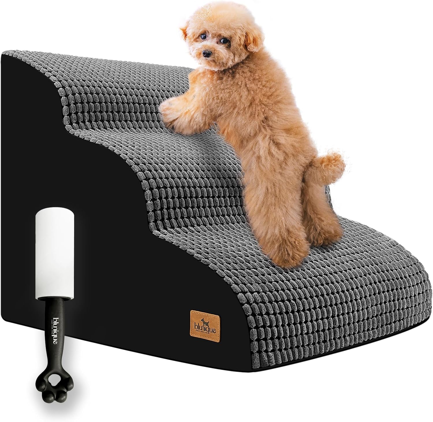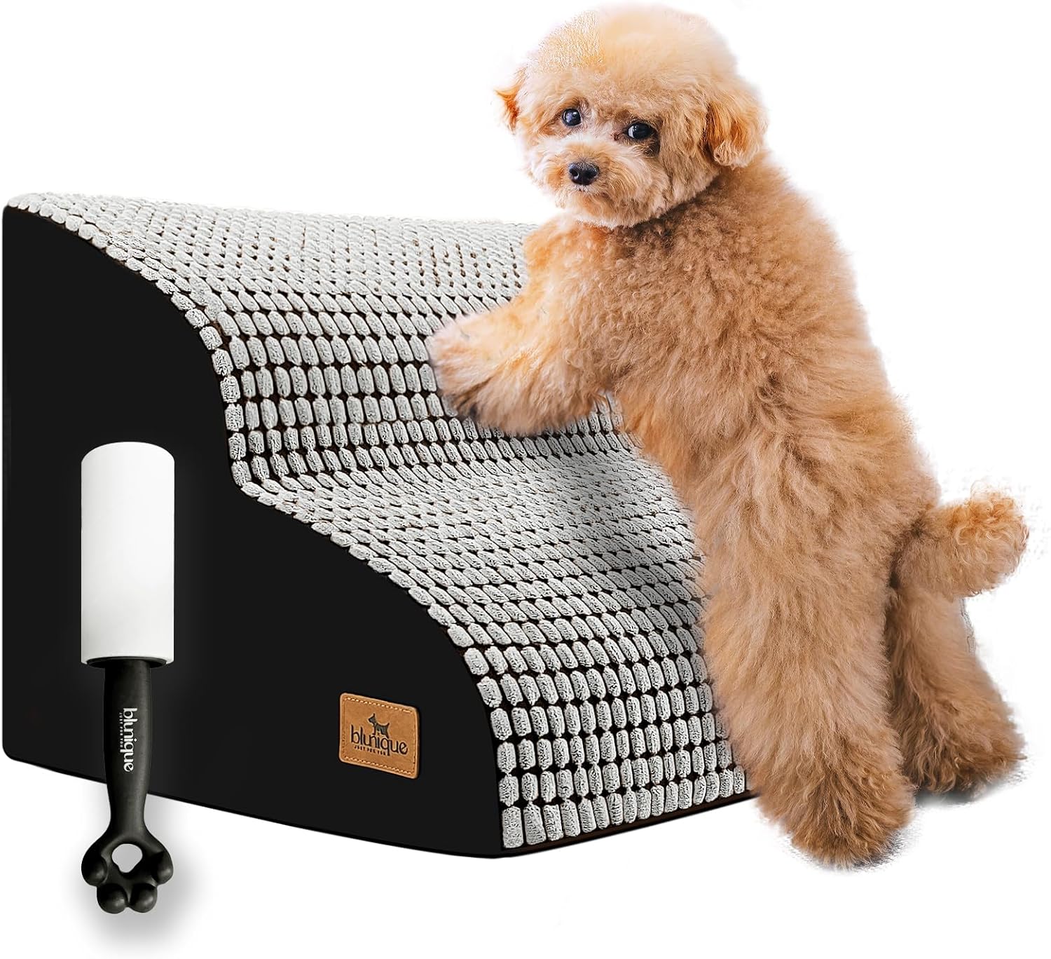 - High Quality Material: 30D high density foam with high resilience provides greater support and no deformation. The soft corduroy dog stair cover and non-slip rubber dotted base ensure your furry friend's safety.