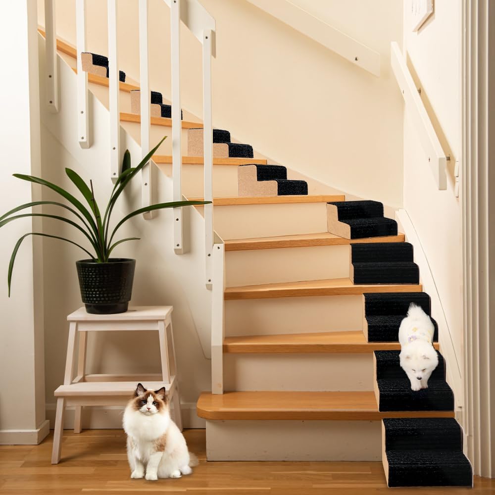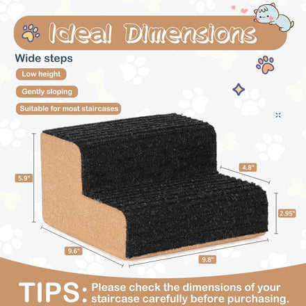 - Suitable for Most Staircase: The dimensions of our dog step is 9.8"L x 9.6"W x 5.9"H. Before purchasing, please make sure that your stair steps can accommodate the dimensions of our product. Simply place the dog stair ramp on the stairs and use it. Located on the side of the stairs, the stairs for dogs won't take up much space and will blend in with your home decoration.