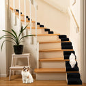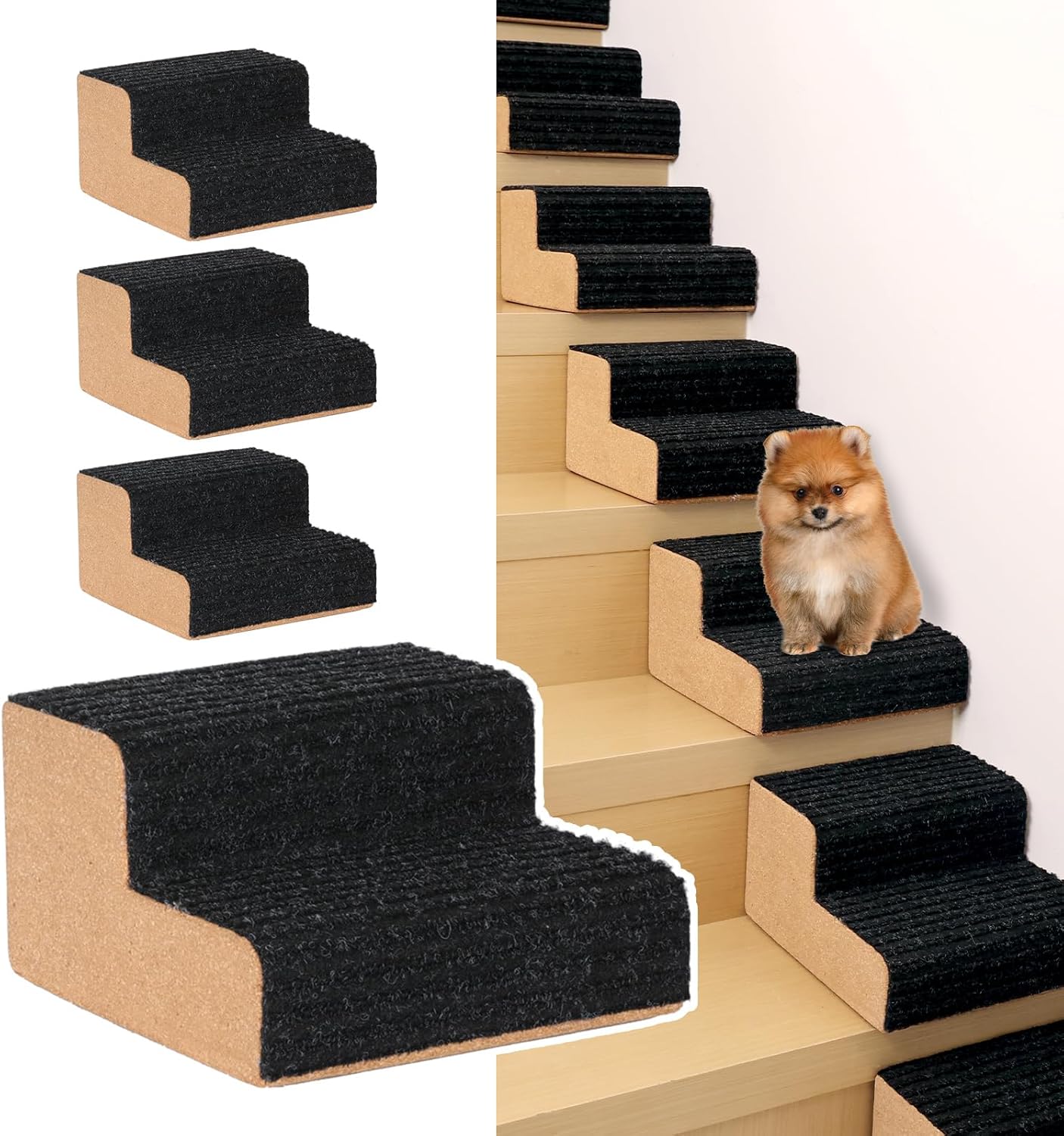 - Non-slip & High Load-bearing: The surface of each step of the pet stair is covered with a large non-slip carpeting, which provides secure footing for your pet. Two anti-slip strips are attached to the base for a firm grip on the floor. The dog ramp for stairs have a high load-bearing capacity and are not easy to deform and collapse, providing stability for pets to climb freely.