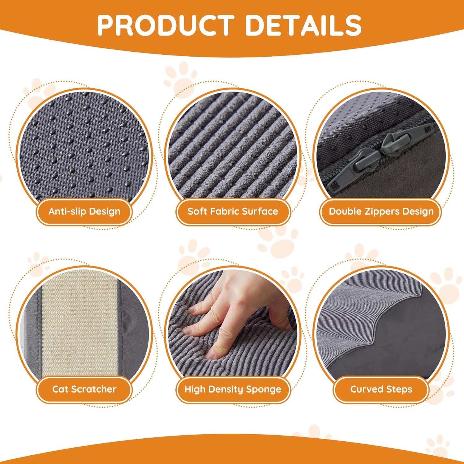 - 【Safe and Steady Design】Curved steps provides maximum climbing comfort for puppies and kittens. Surface layer of the dog ladder is made of thick coral fleece, providing a soft and non-slip experience for your pet's feet. High-density of pure foam make the stair more steady when your pets walk on.