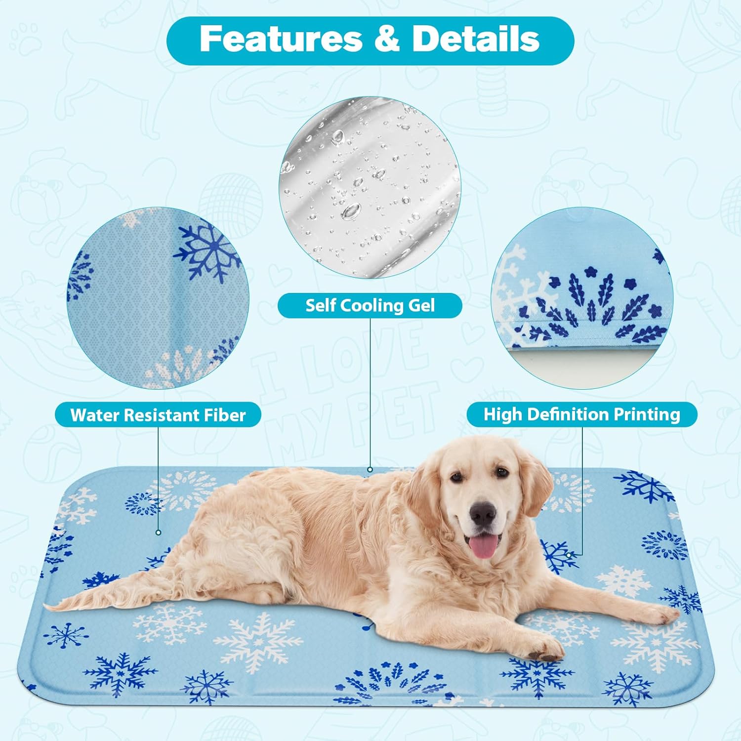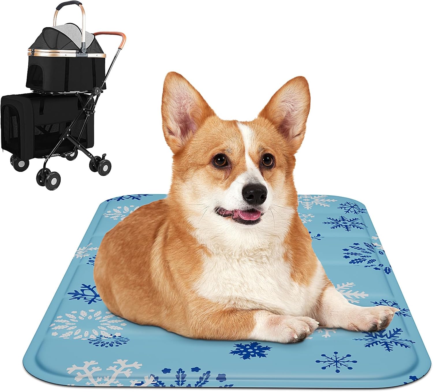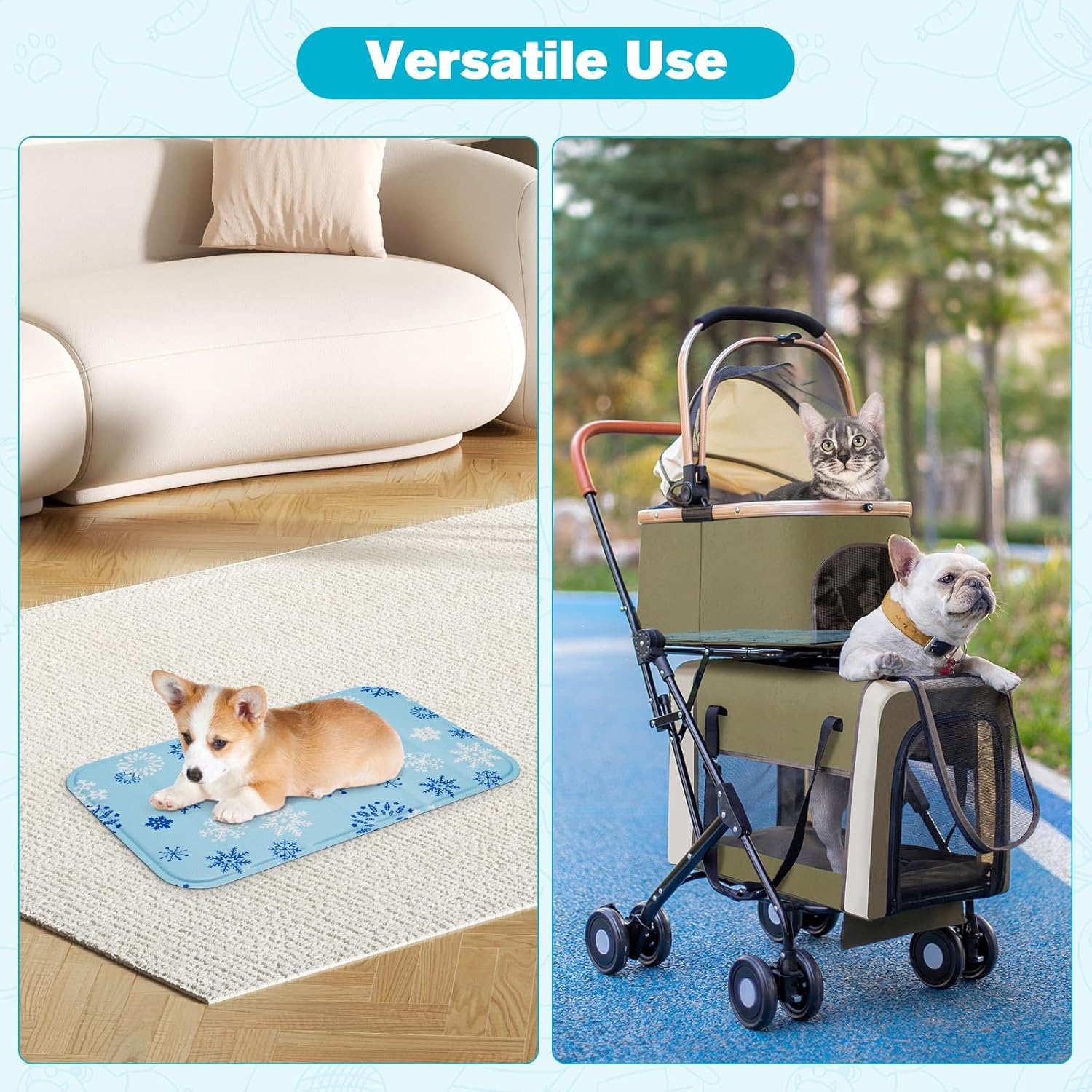 - Snowflake Design for Style and Function: Featuring a charming snowflake pattern, this cooling pad adds both style and function to your pet's stroller. Not only does it keep your dog cool, but it also creates a cozy environment that your pet will love