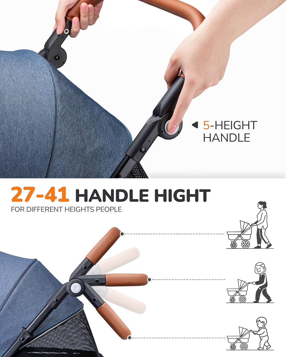 - 【Adjustable Handle for Comfortable Pushing】The handlebar height adjusts from 27 to 41 inches, making it easy for both tall and petite users to push comfortably. Great for families, seniors, or anyone looking for an ergonomic adjustable handle dog stroller.