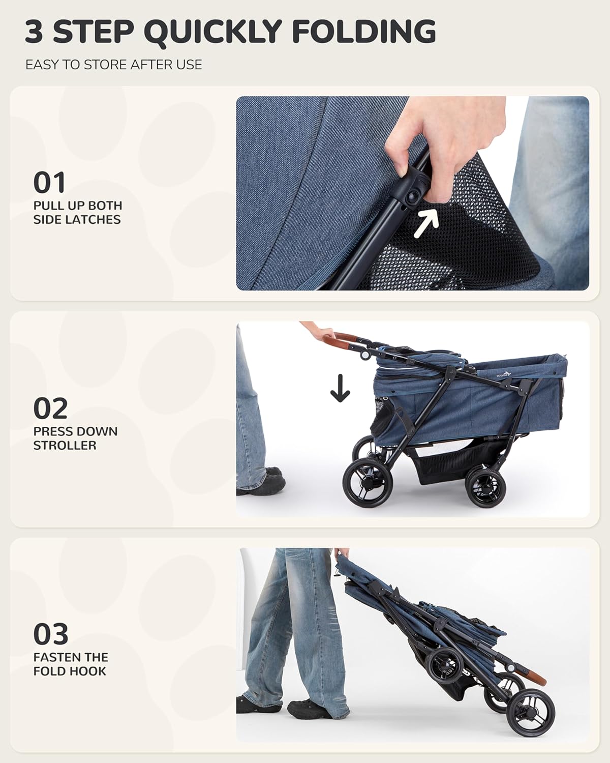 - 【Durable, Scratch-Resistant, and Chew-Proof】Constructed with reinforced steel frame and tough 600D Oxford fabric, the stroller is made to withstand scratching and biting. A truly heavy-duty pet stroller that ensures long-lasting performance and safety.