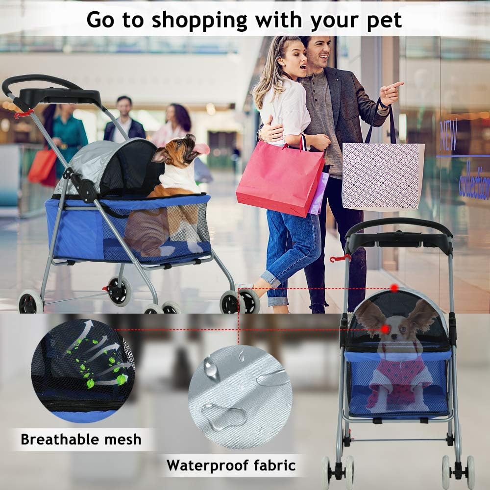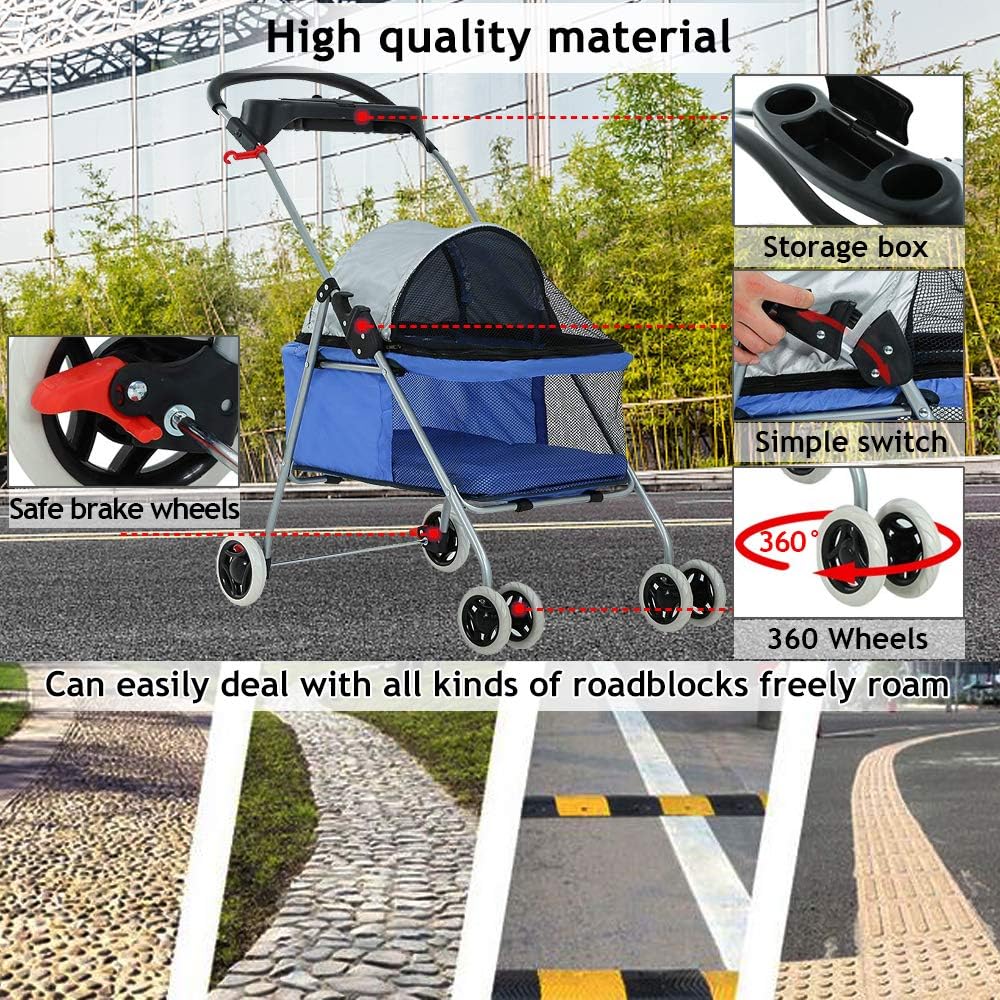 She’s your baby, your faithful companion, your trusted confidant, and – above all – an integral part of your family. He’s there for you no matter what, and looks to you for guidance, care, comfort and affection. And wherever you go, she wants to be there as well – whether it’s on a walk, shopping, running errands, or traveling. That’s why we developed our luxurious, sturdy and spacious pet strollers. Designed with plenty of space for a medium or large pet, or for housing several smaller furry friends, our durable carriers are also well-suited for dogs and cats that are older, sick, disabled, or recovering from medical procedures. With the pet stroller your forever friend can travel in style and comfort, enjoying fresh air, invigorating smells and interesting sights – and knowing that you’re right there with them, every step of the way. ♥Product Features: √Dual Cup Holders and Center Tray √Comfortable Padded Interior Bottom √Collapsible for Easy Storage √Top, Front Mesh Windows for Air Flow and Viewing √360°Swivel Front Wheels and Rear Brakes Wheels ♥Product Specifications: - Material: High Quality Nylon; - Open Size: 30"(L) x 19"(W) x 36.8"(H); - Folded Size: 19"(L) x 8.6"(W) x 34"(H); - Package Include: 1 x Pet stroller; - Weight Capacity: 35Lbs; Dog stroller Pet stroller cat strollers pet stroller jogger dog strollers for small dogs cats doggie stroller with cup holders, removable liner and Storage Basket 4 wheel stroller dog strollers for medium dogs Large dog Kitten cage 4 Wheels Stroller Travel Folding Carrier Strolling Cart dog stroller cat stroller pet stroller jogger with cup holders Large pet stroller for small dog double dog stroller cat stroller for medium dog, cat carrier.