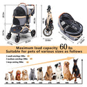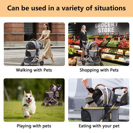 - SAFETY AND RELIABILITY: The four wheels are made of durable PU material to suit all occasions. The pushchair has large wheels and the front wheels can swivel 360°, these wheels not only ensure durability but also provide smooth and quiet operation. Whether you are walking on the sidewalk or on rough ground, our pet stroller will provide a comfortable and pleasant experience for your pet.