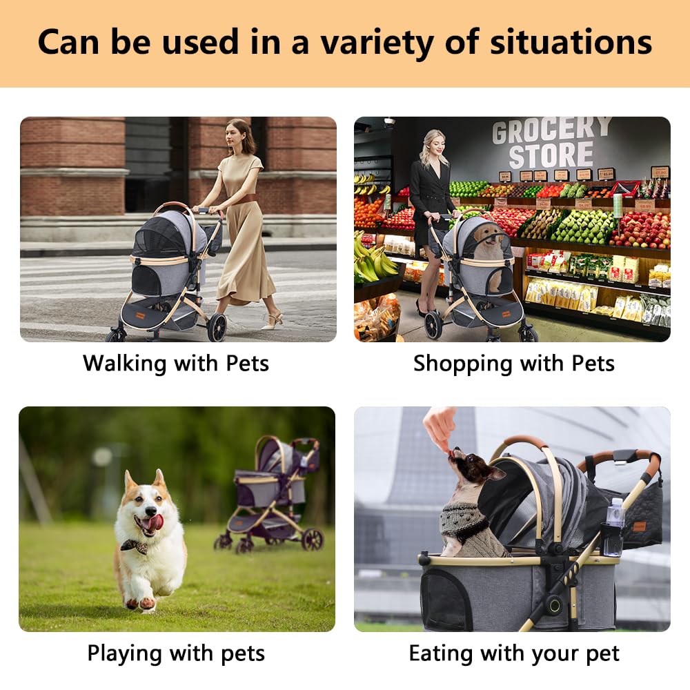 - DETACHABLE, EASY TO ASSEMBLE AND DISASSEMBLE: Our stroller and pet compartment are detachable, allowing for simple assembly and disassembly, the stroller can be folded at the touch of a button for easy on-the-go storage and is equipped with a smooth snap seal in the pet compartment. Whether you need to transport your pets in the vehicle, walk them for a stroll or just provide them with a safe space, our carts are quick to adjust when it comes to meeting your needs.